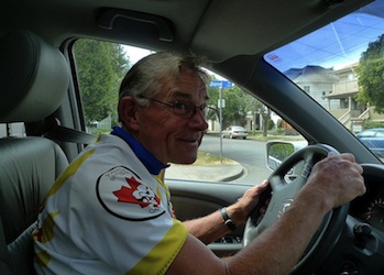 Organizer Ken pilots the event van before the start.
