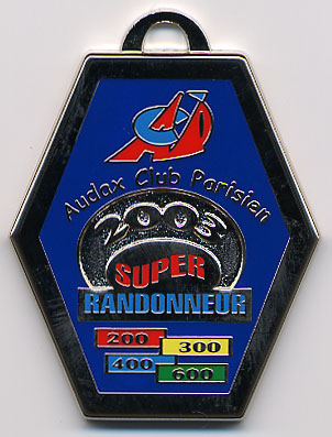 The Randonneur 500 medal was awarded to
