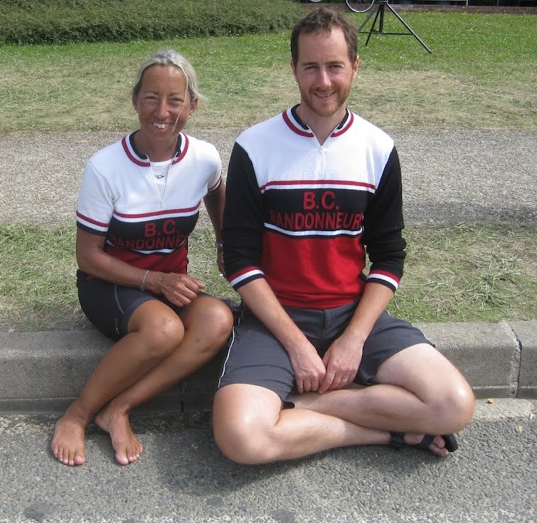 Ali Holt and Keith Patterson cheering riders home in style at finishing chute at PBP 2011.