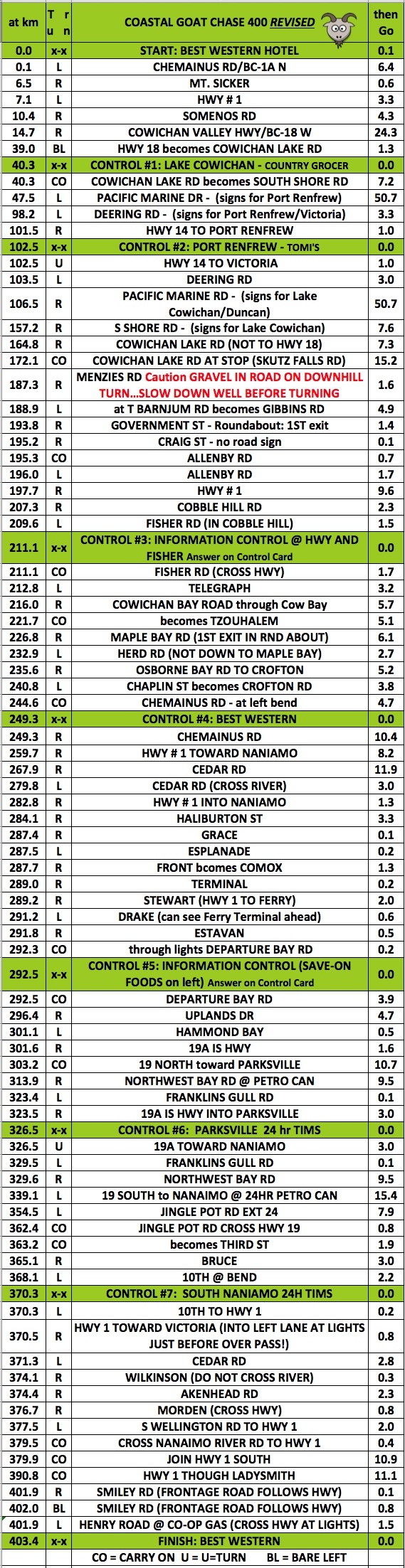 Coastal Goat Chase - 400 km Tuersday, April 14, 7 a.m.
