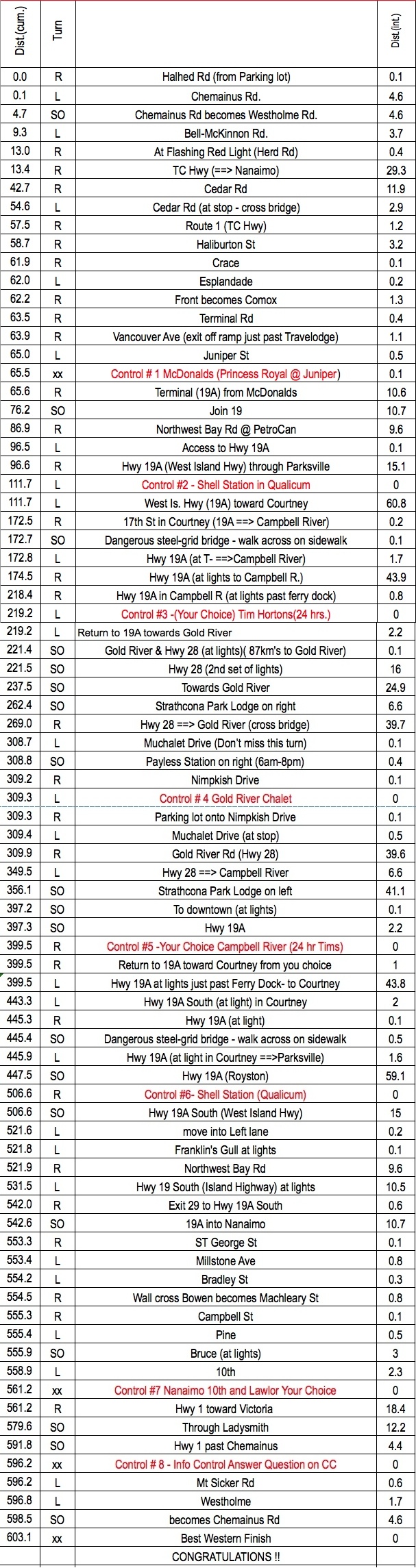 | Note: This is not the official route sheet. Ride organizers may make last minute changes because of road closures or other problems. The route sheet you receive at the start of the ride is the official one. |