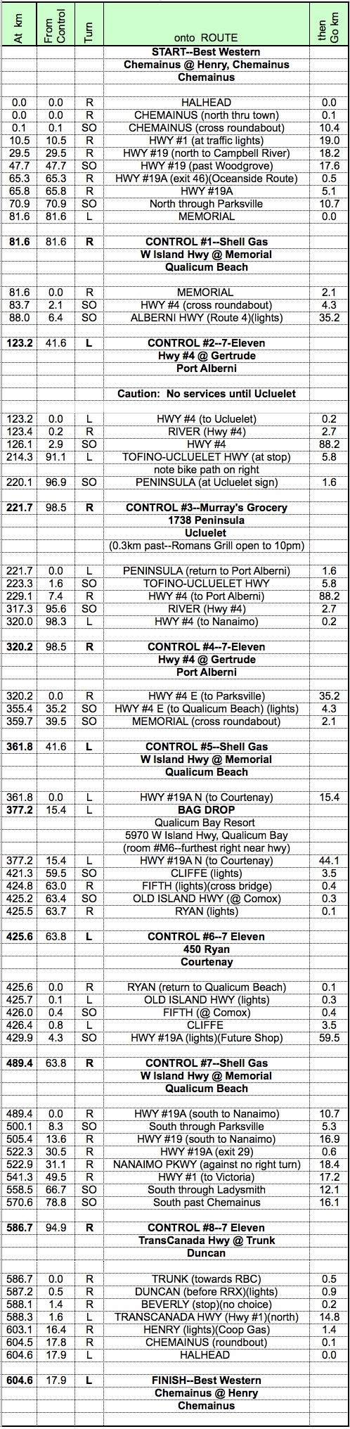 | Note: This is not the official route sheet. Ride organizers may make last minute changes because of road closures or other problems. The route sheet you receive at the start of the ride is the official one. |
