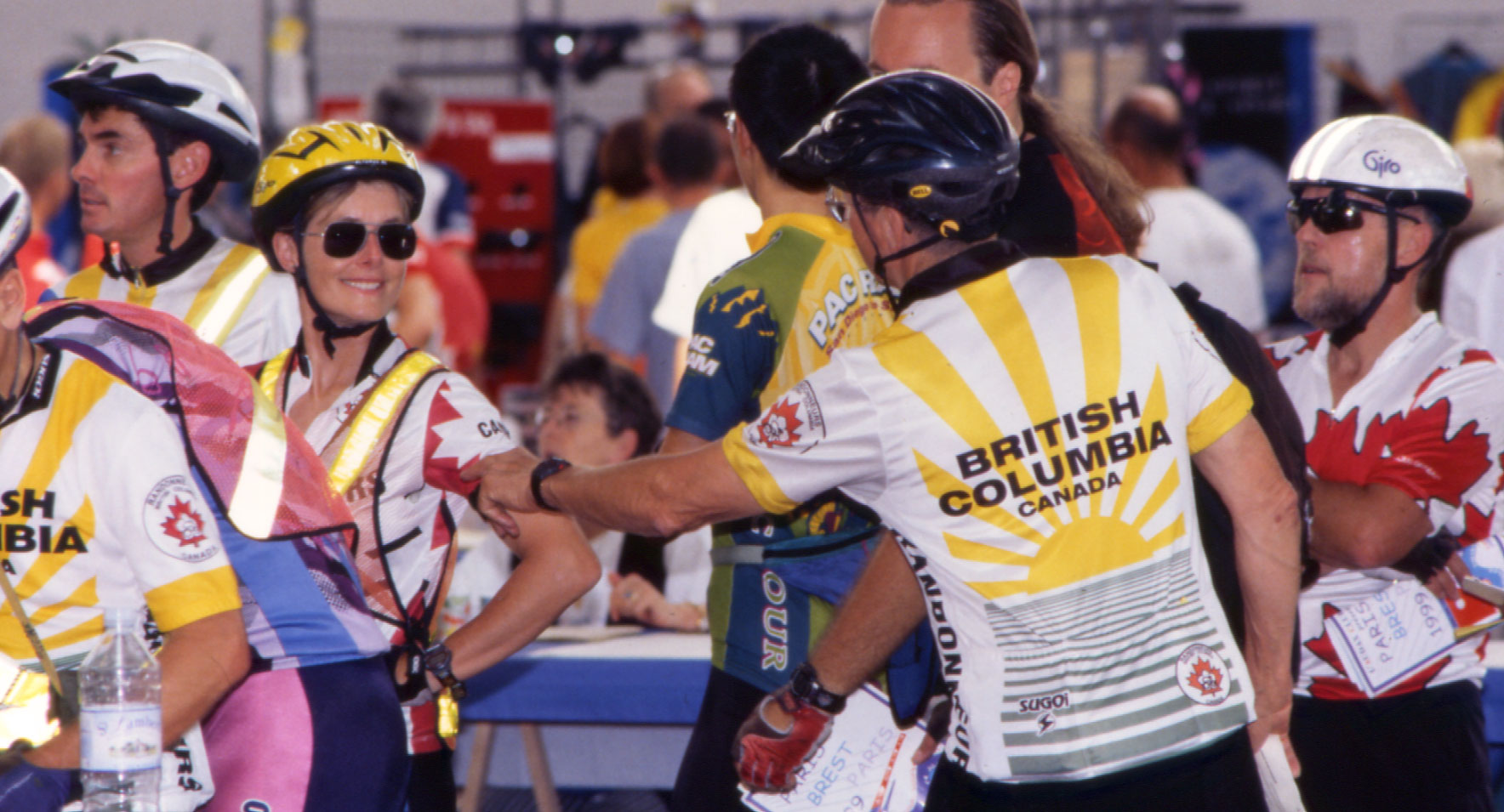 Eric Fergusson (white helmet) , Danelle Laidlaw, Réal Préfontaine (dark helmet)