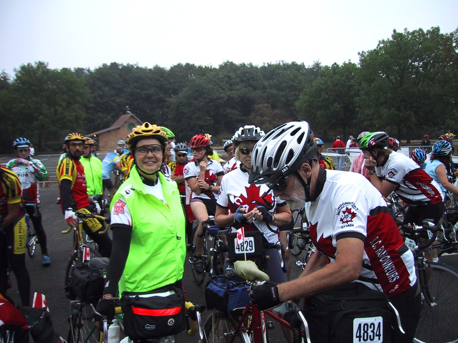 Prologue (cerimonial ride on morning of start day). Val White, Sarah Tennant (background, red helmut), Stella Meades and Sandy Sanquist