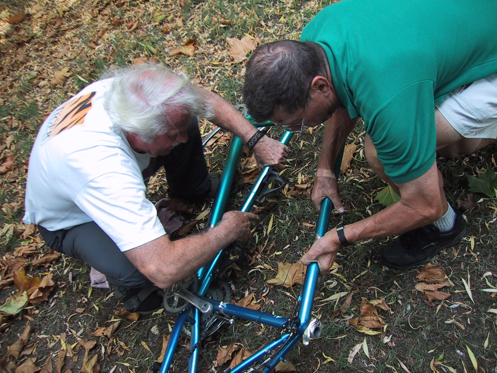 Manfred Kuchenmuller and Réal Préfontaine assembling the tandem