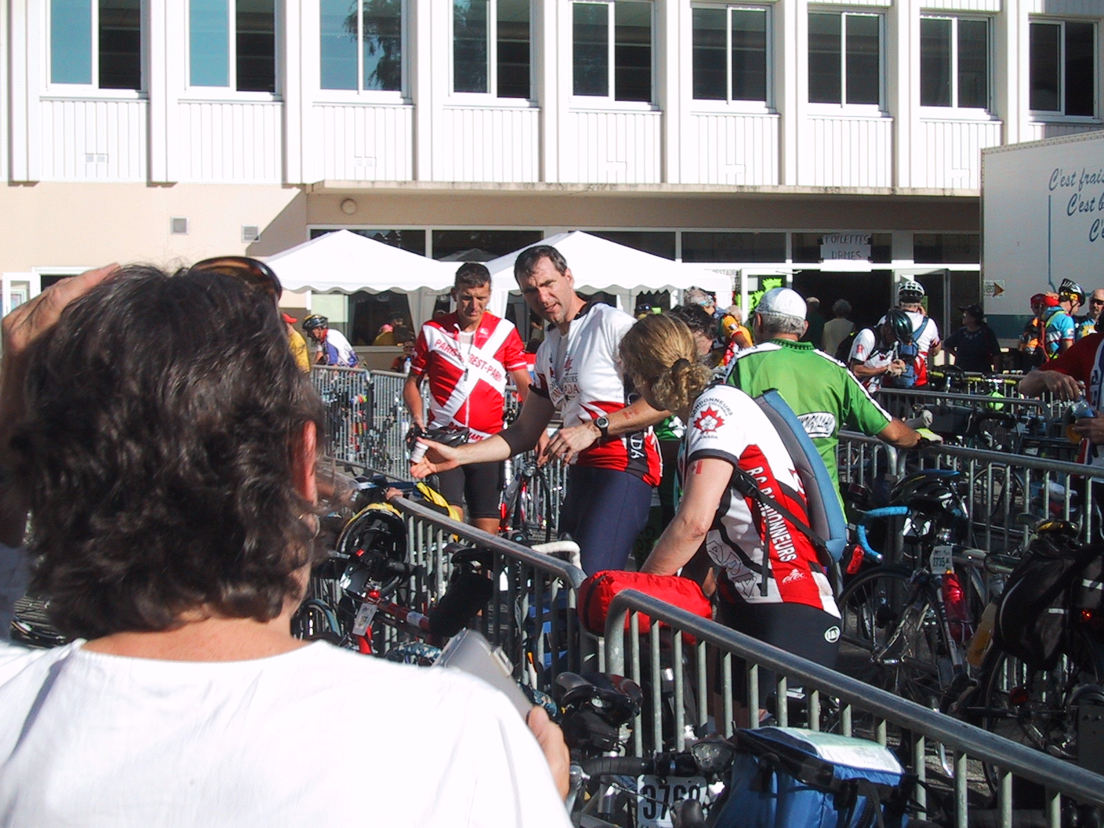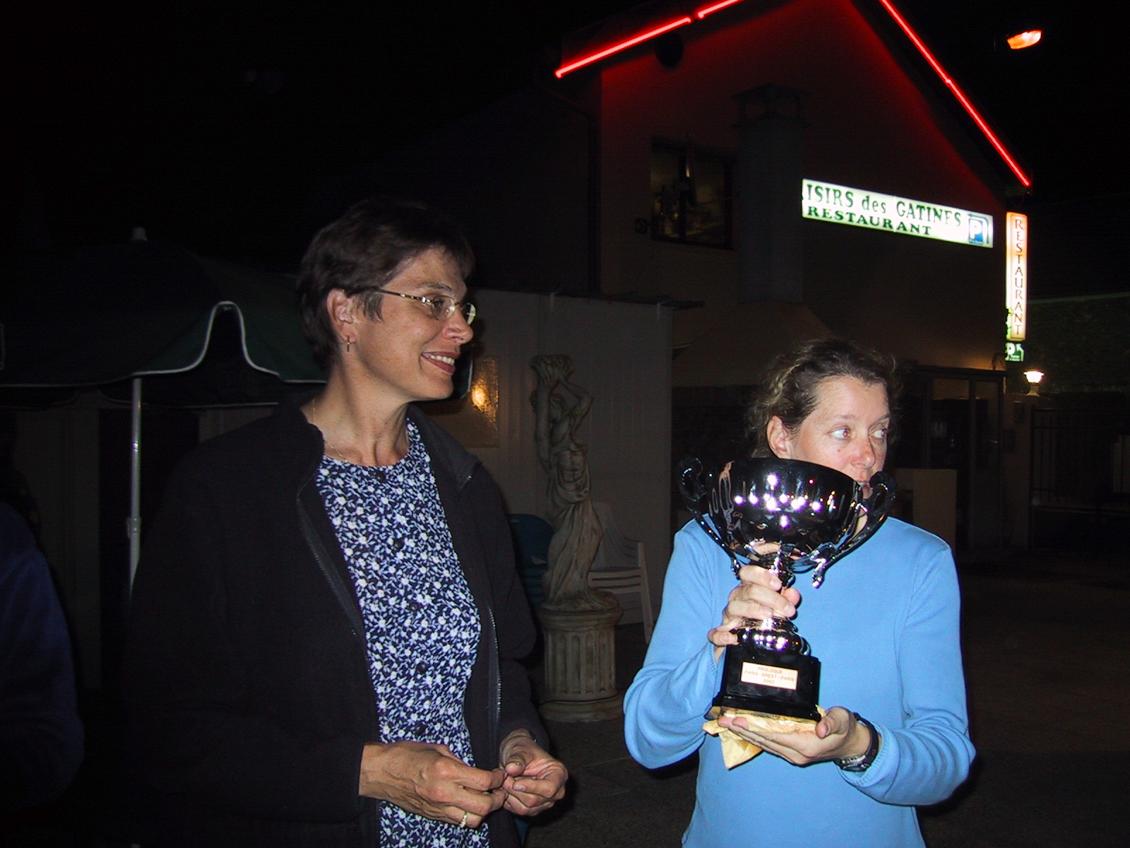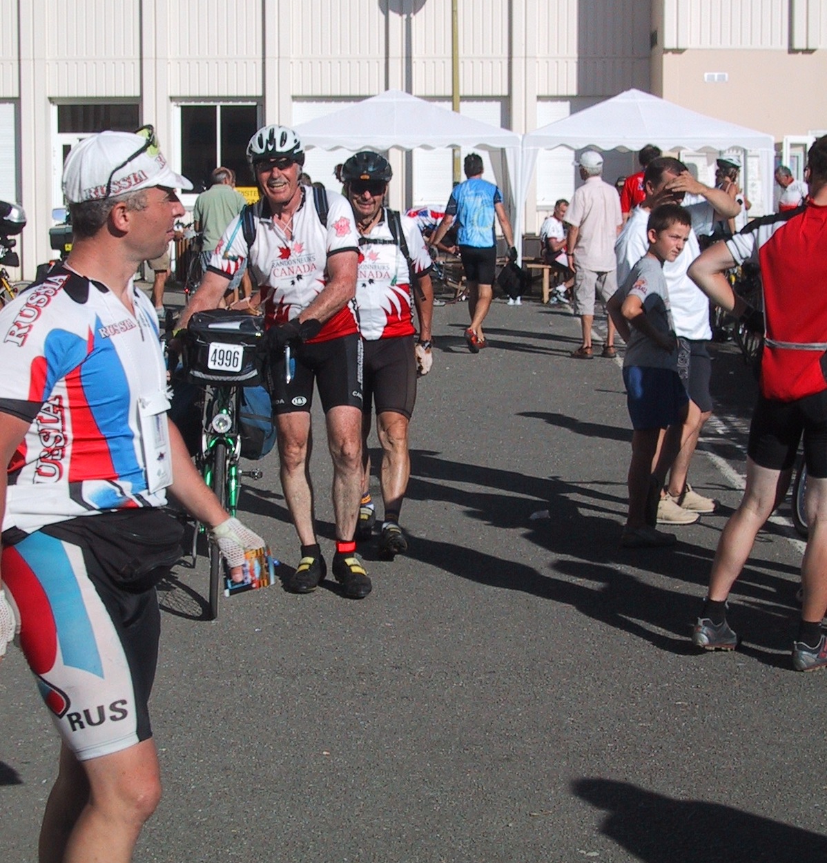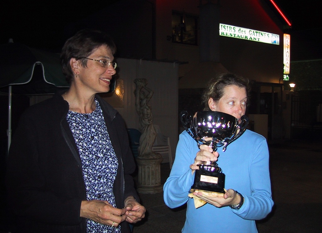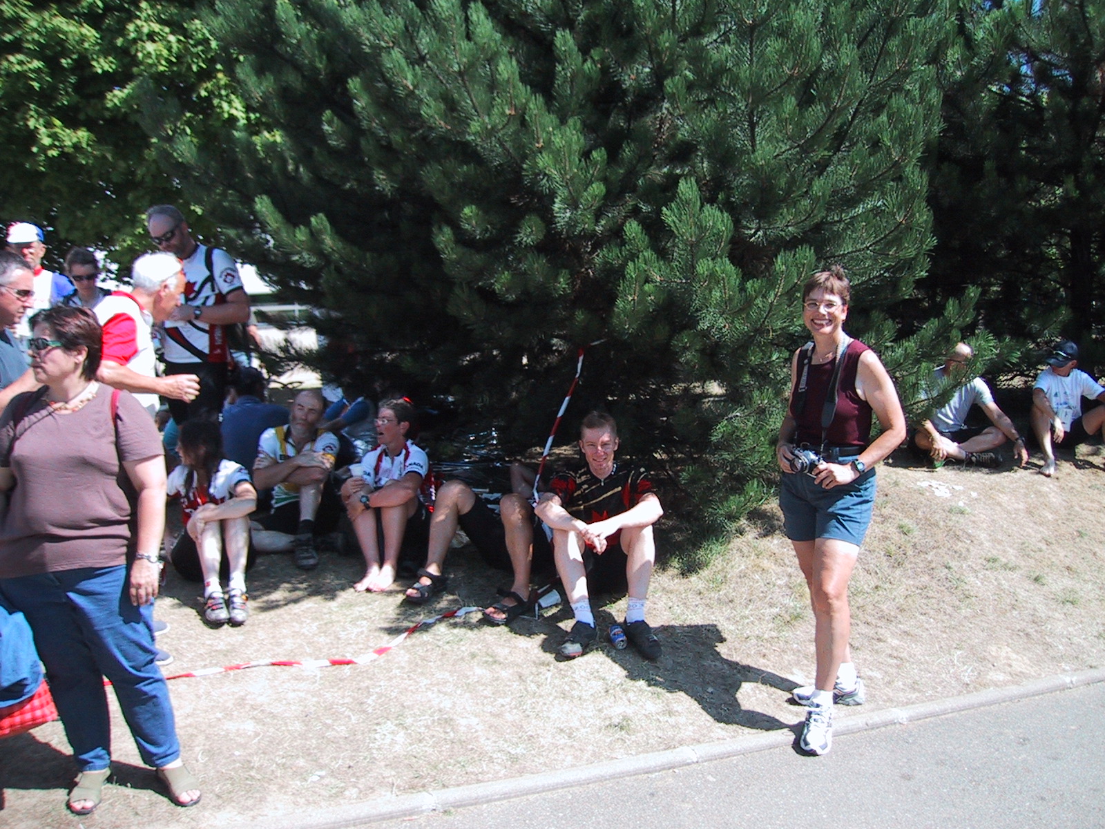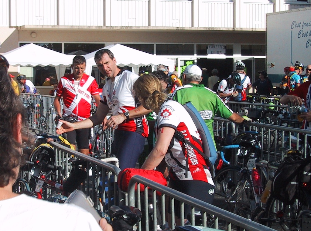 Finish (St-Quentin-en-Yvelin) - Mike Poplawski (sitting, smiling) and Barb Henniger (standing, smiling)