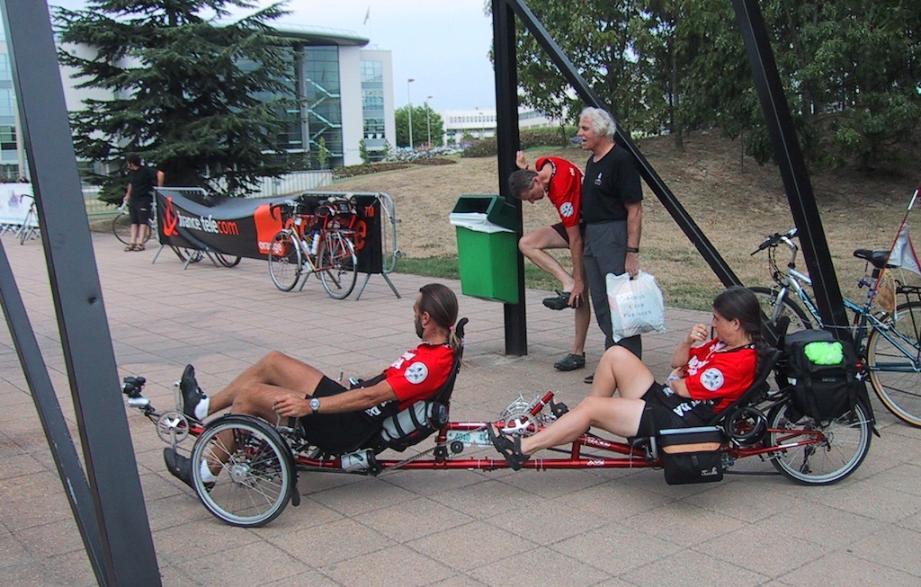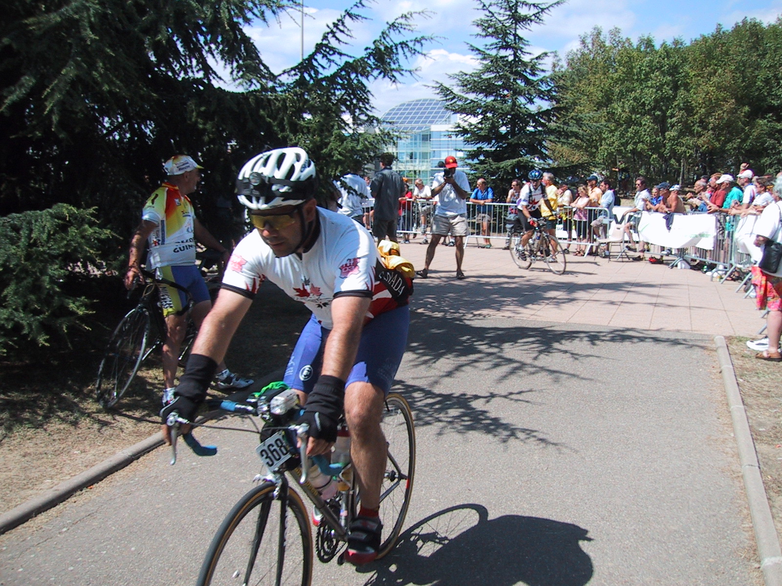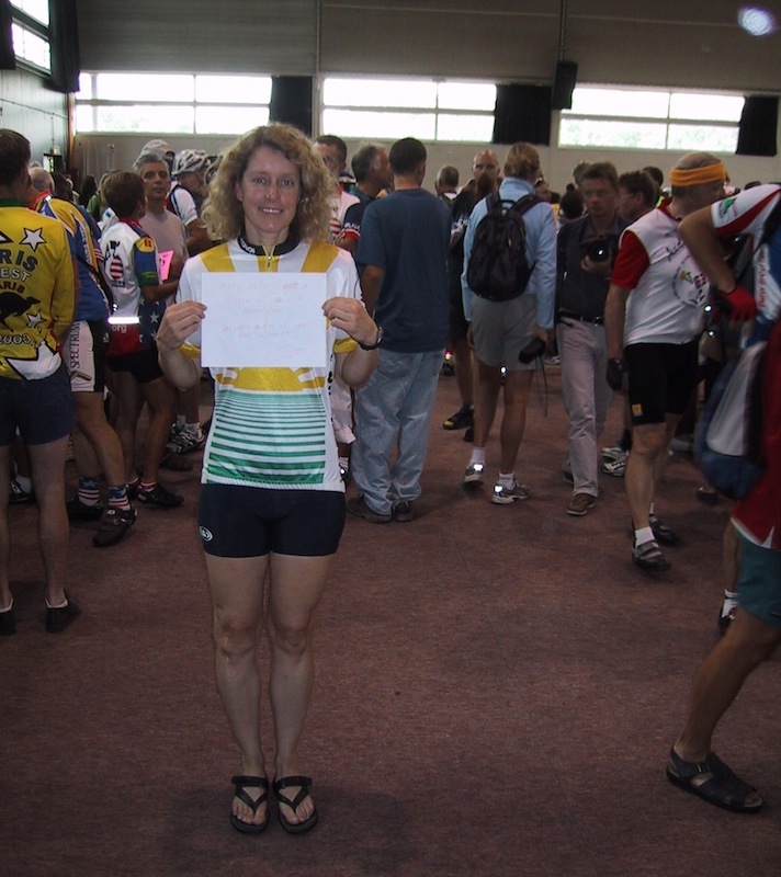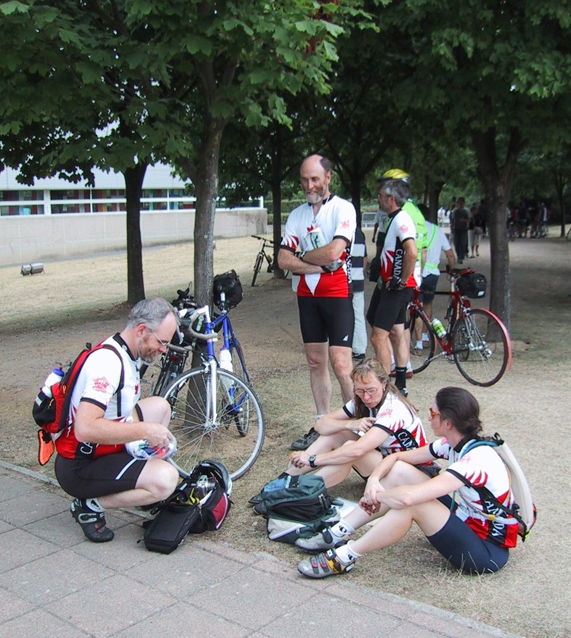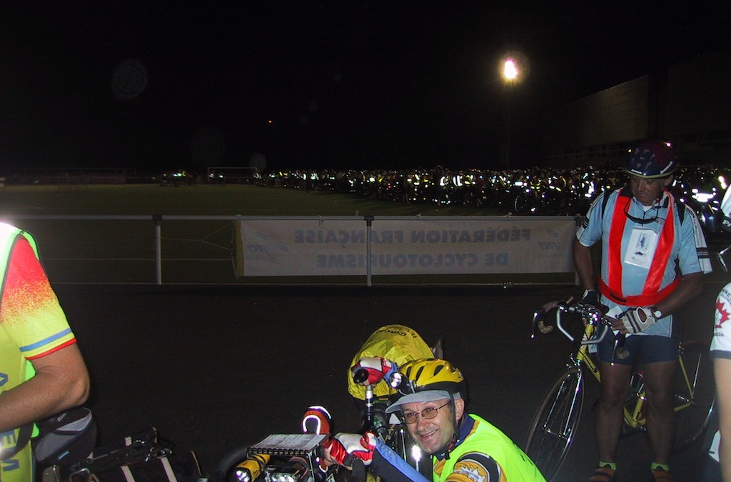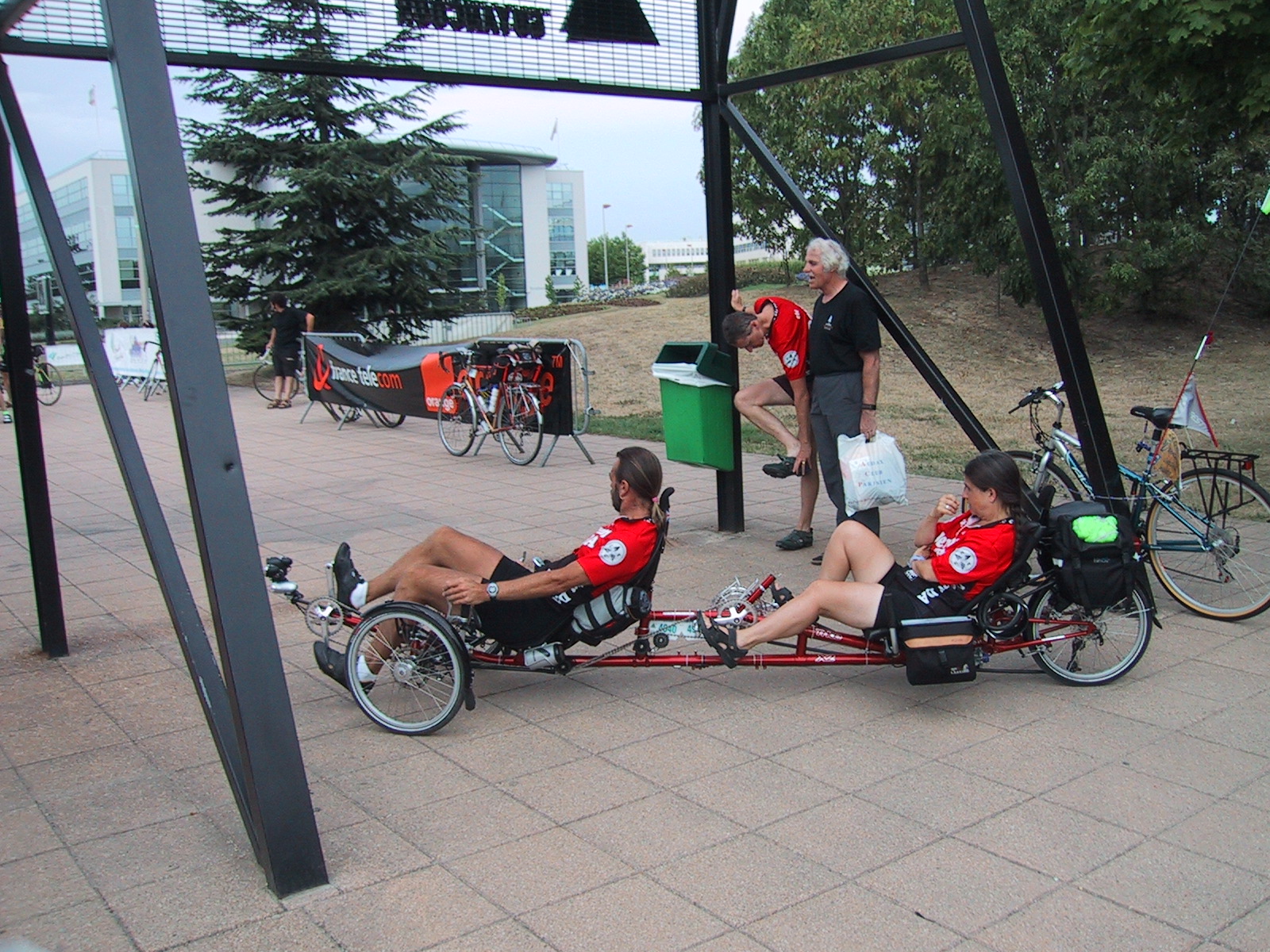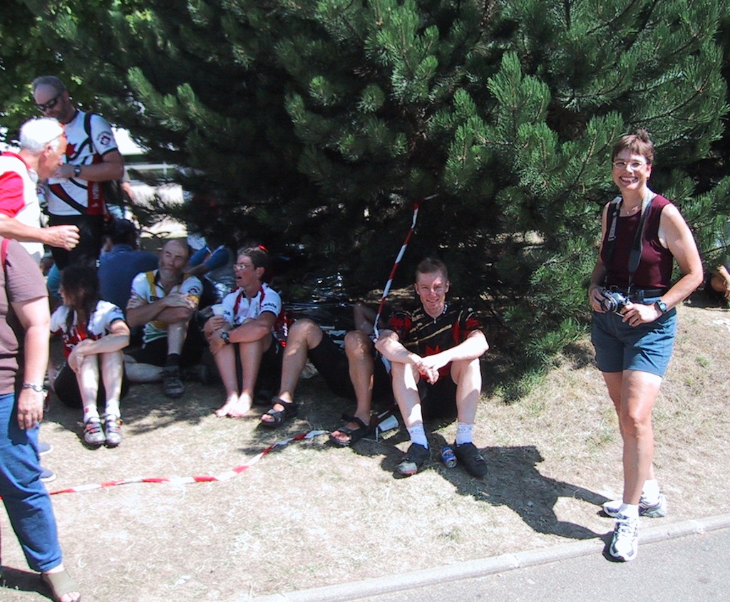 Finish (St-Quentin-en-Yvelin) - Mike Poplawski (sitting, smiling) and Barb Henniger (standing, smiling)
