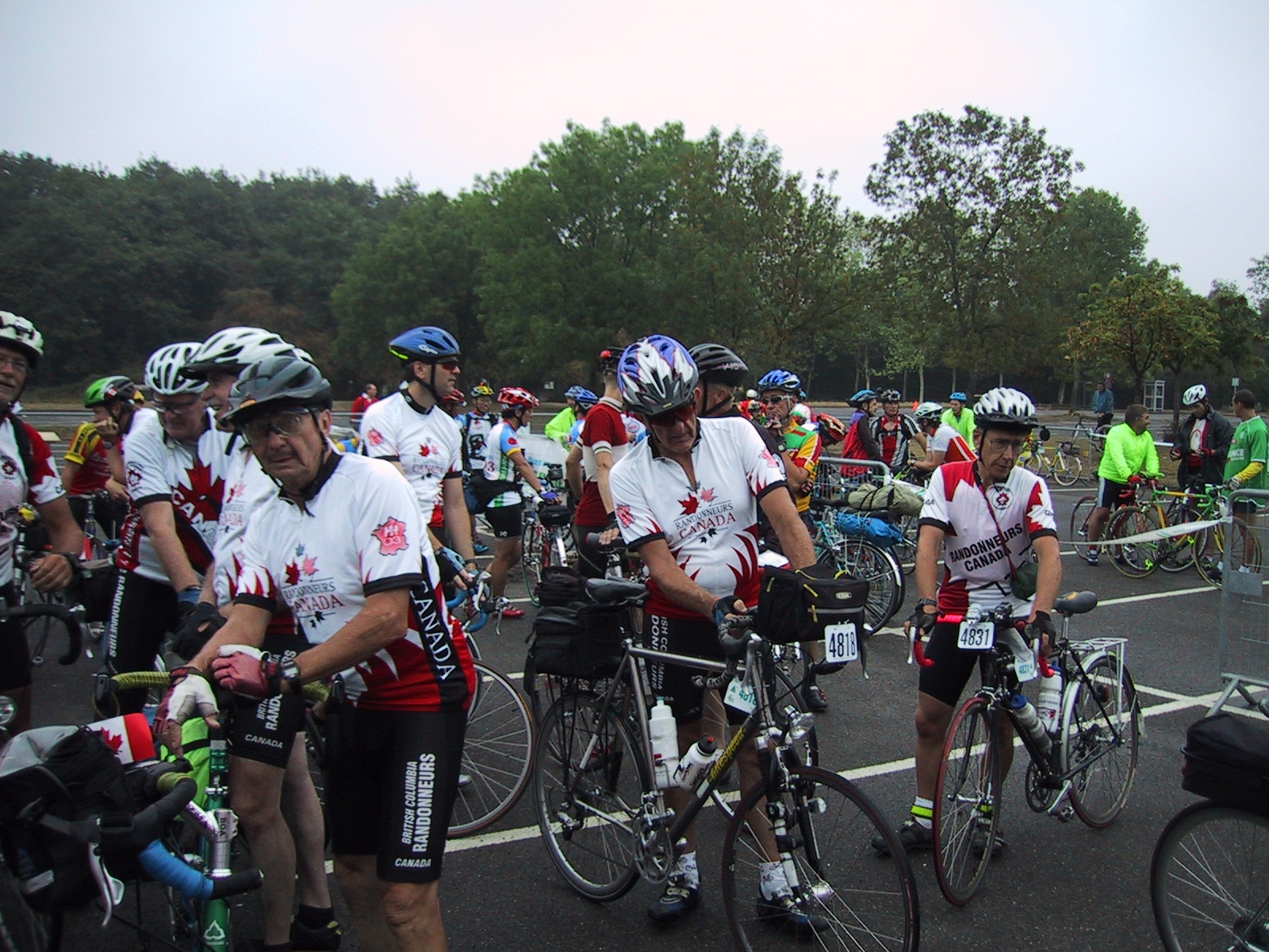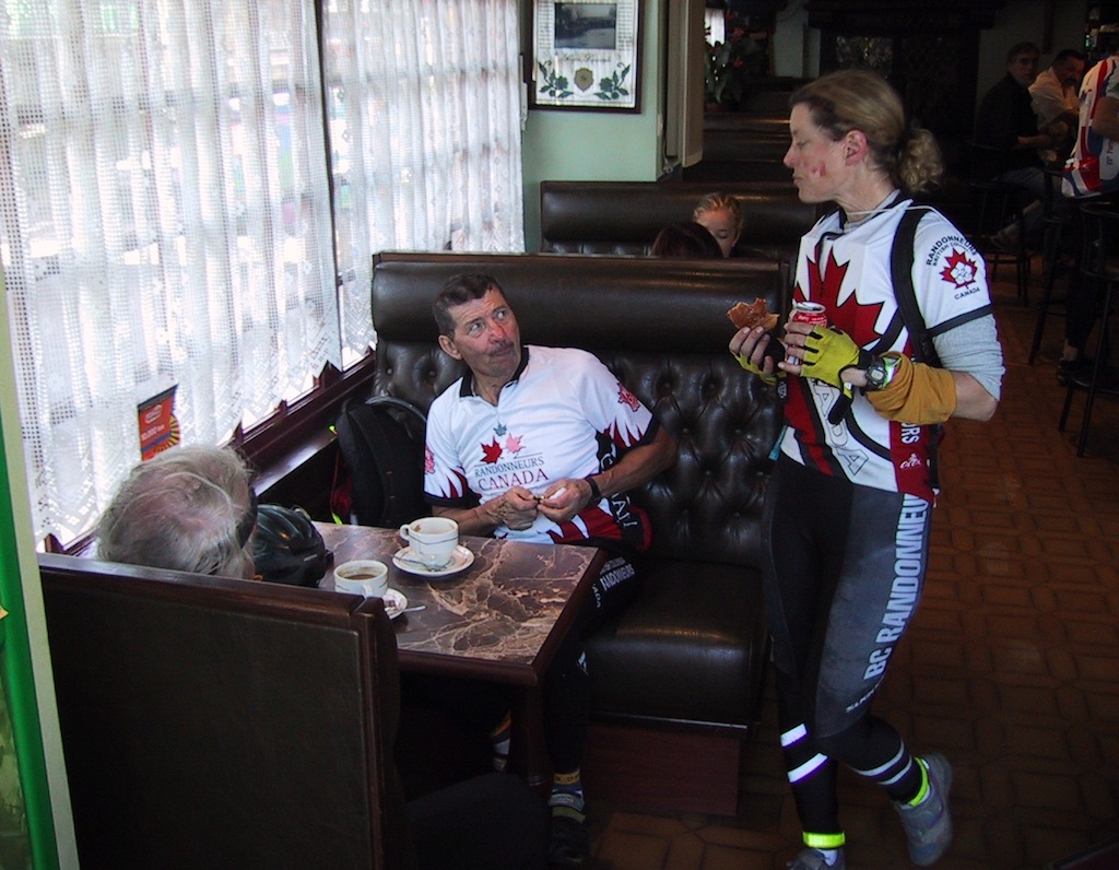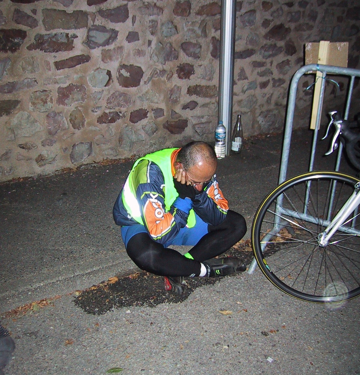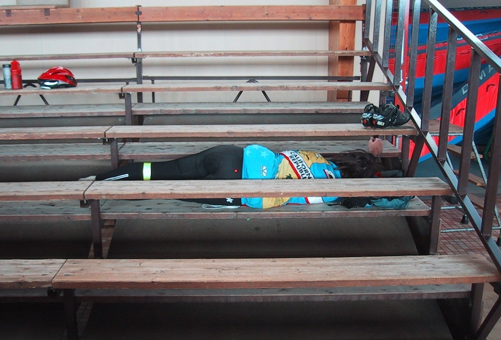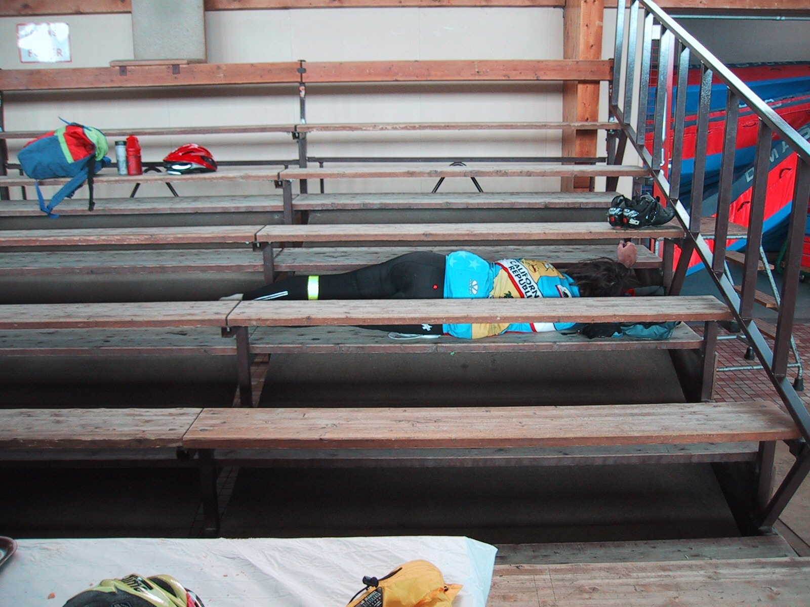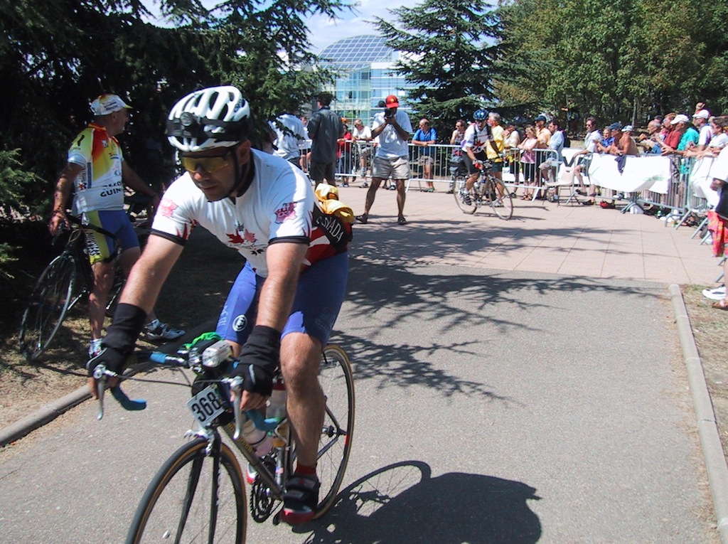 Finish (St-Quentin-en-Yvelin) - Mike Poplawski (sitting, smiling) and Barb Henniger (standing, smiling)