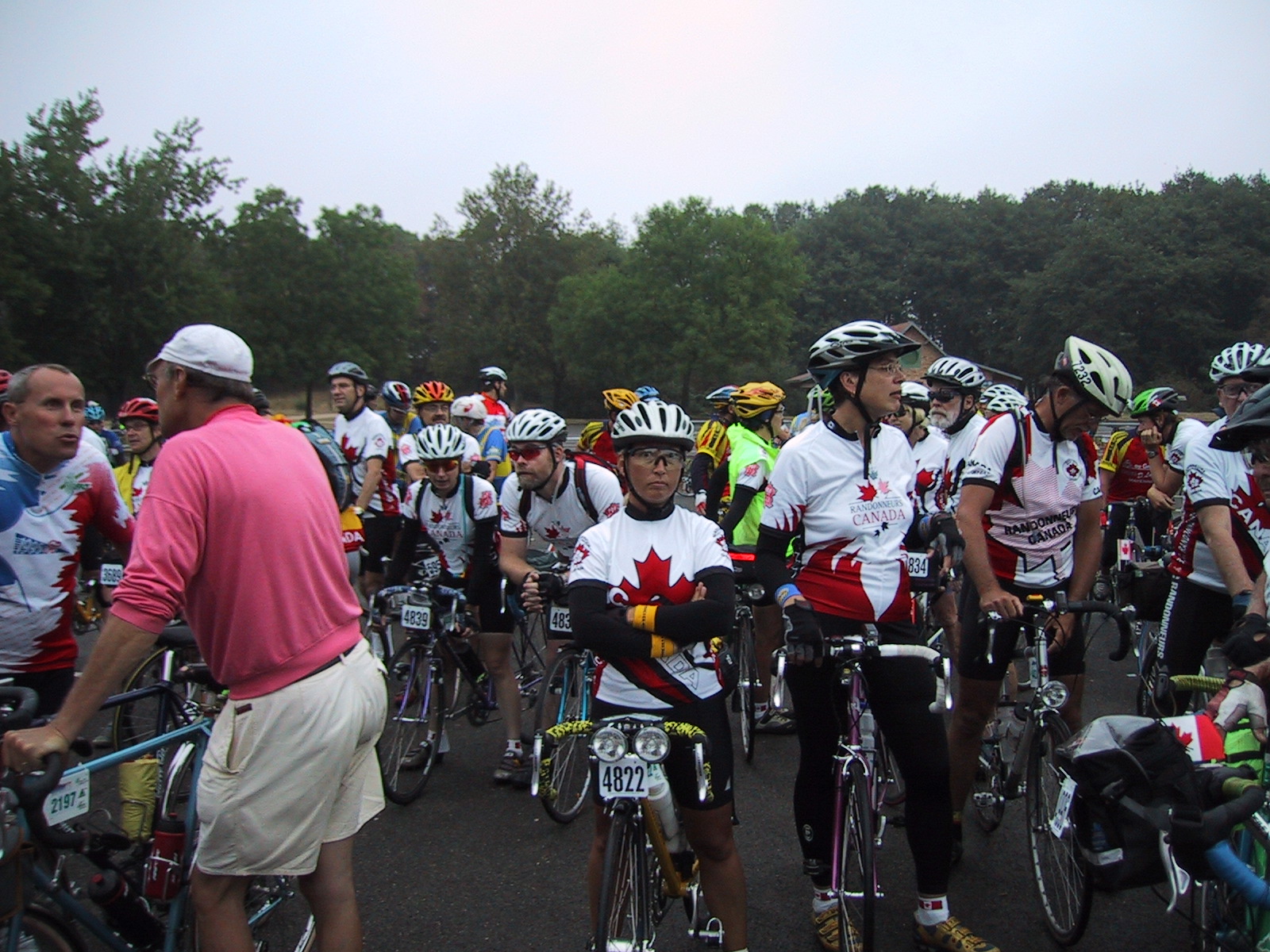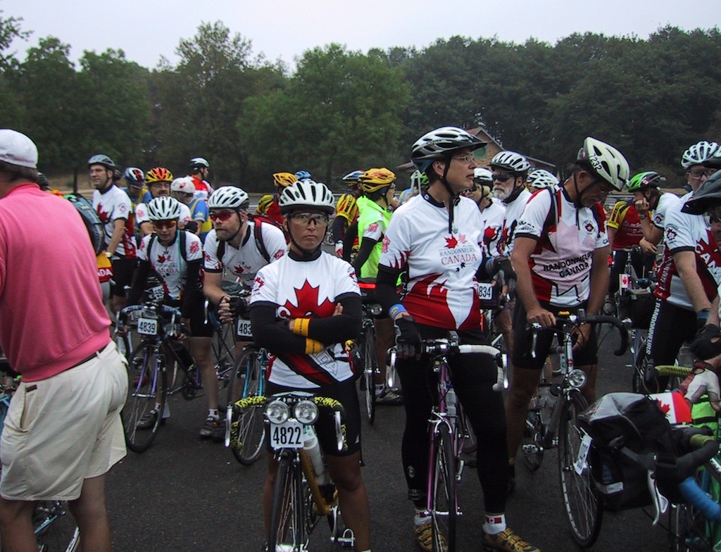 Les RM booth promoting the 2004 Rocky Mt 1200 - Karen Smith. Réal Préfontaine far right.