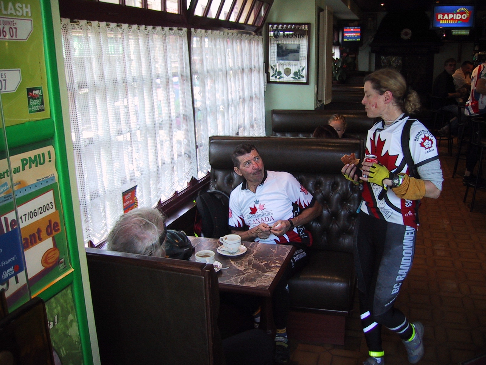 Mortagne-au-Perche(? ) control - Karen Smith, Ali Holt and Roger Holt