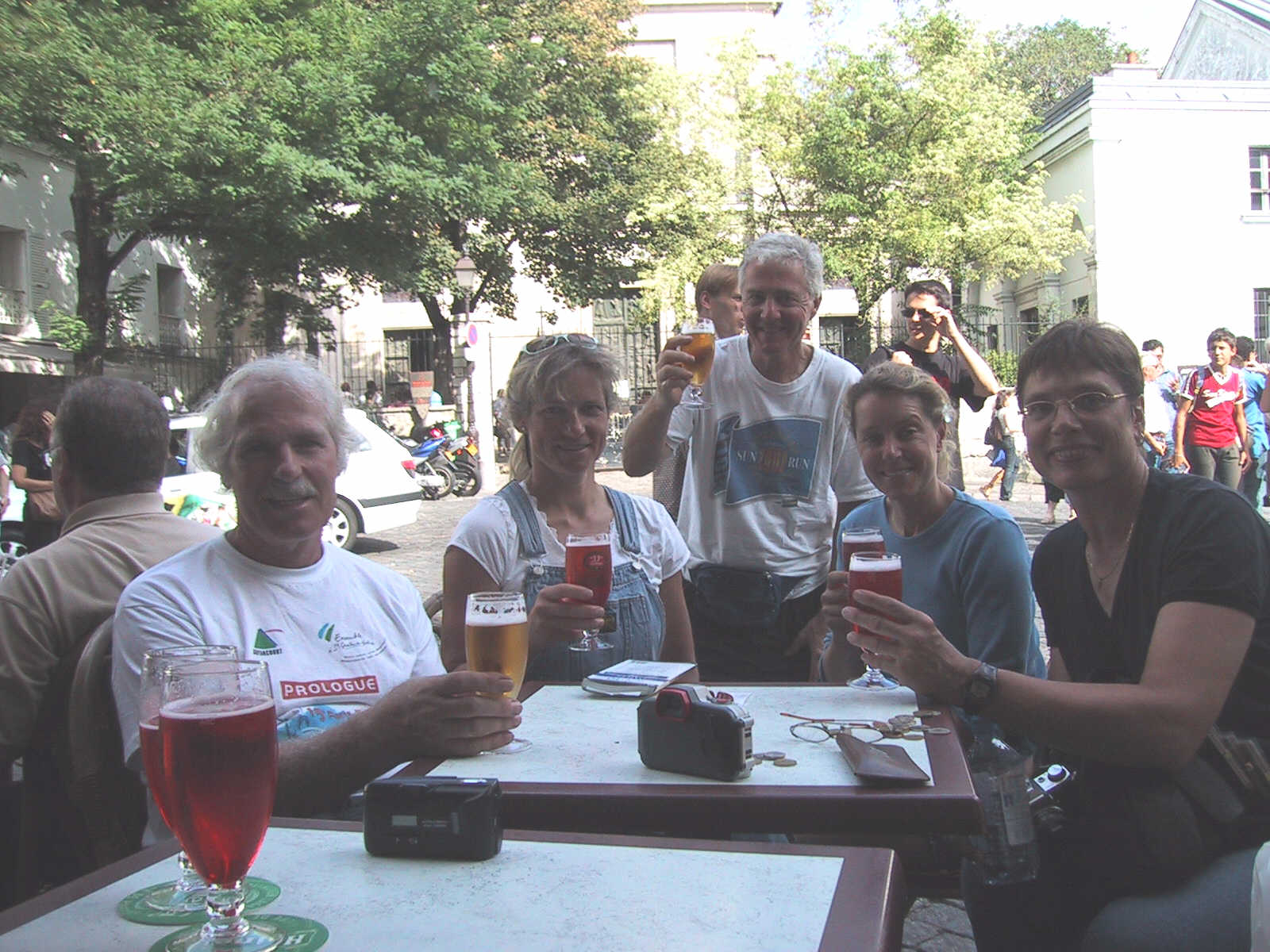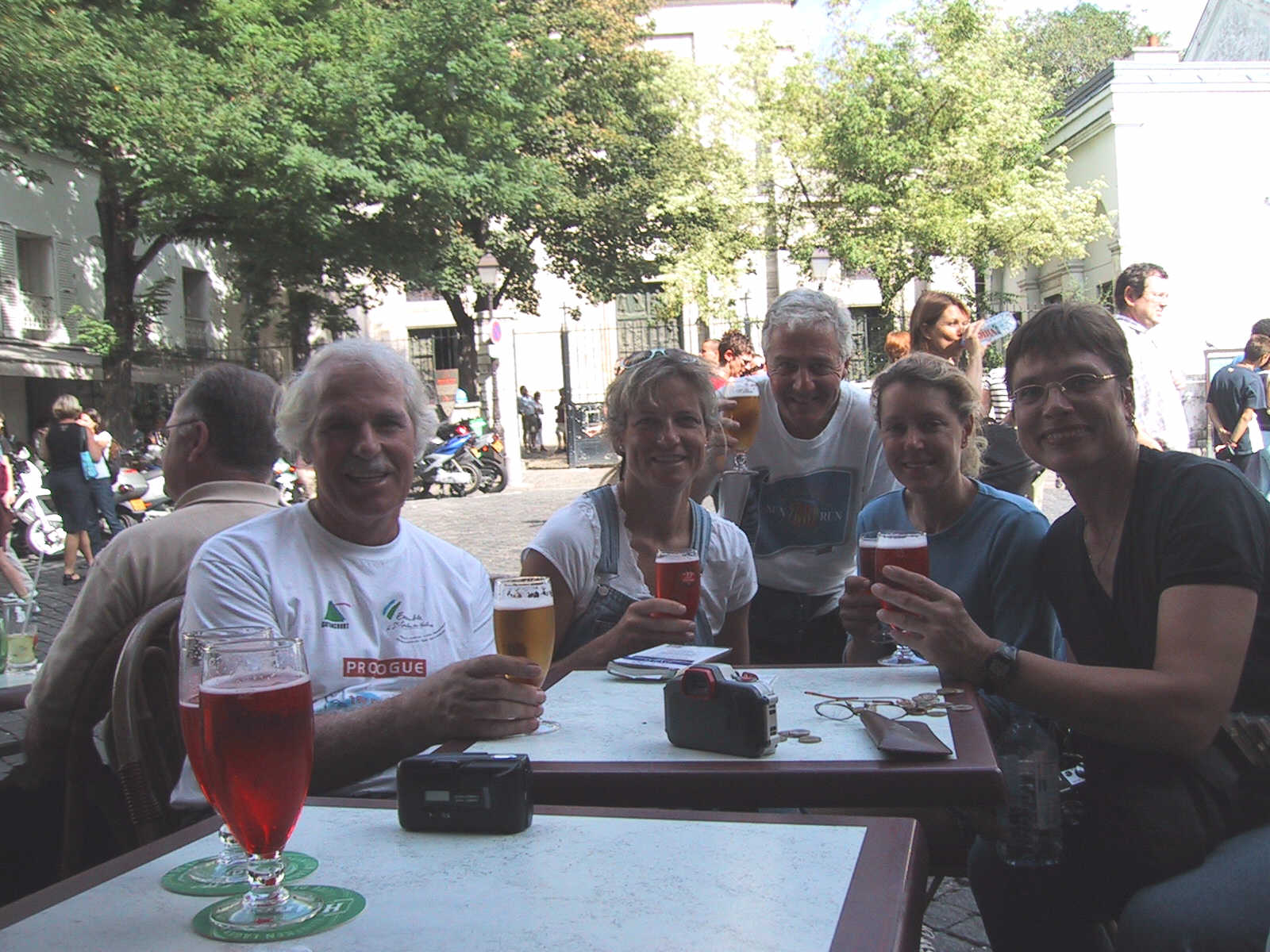 Paul Lahti (toasting), Brian Westerberg, Karen Smith (talking) and Michel Richard (white shirt)