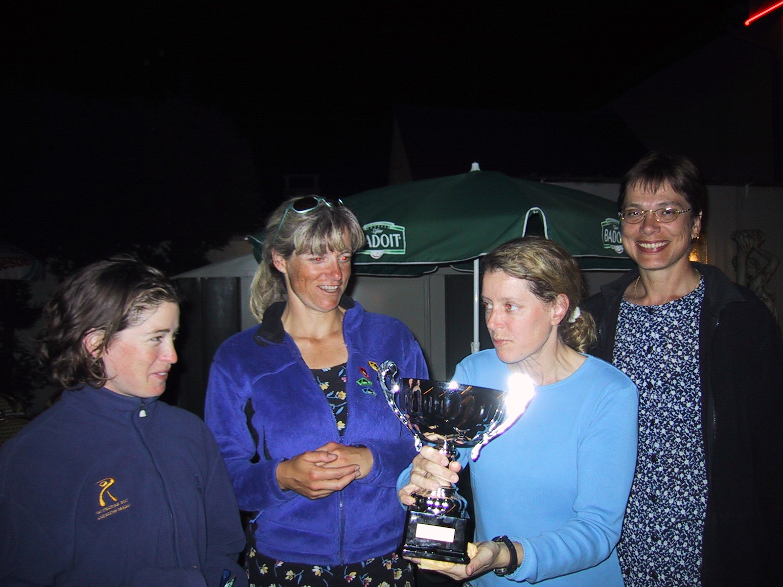 Val White, Sarah Tennant (background, red helmut), Stella Meades and Sandy Sanquist