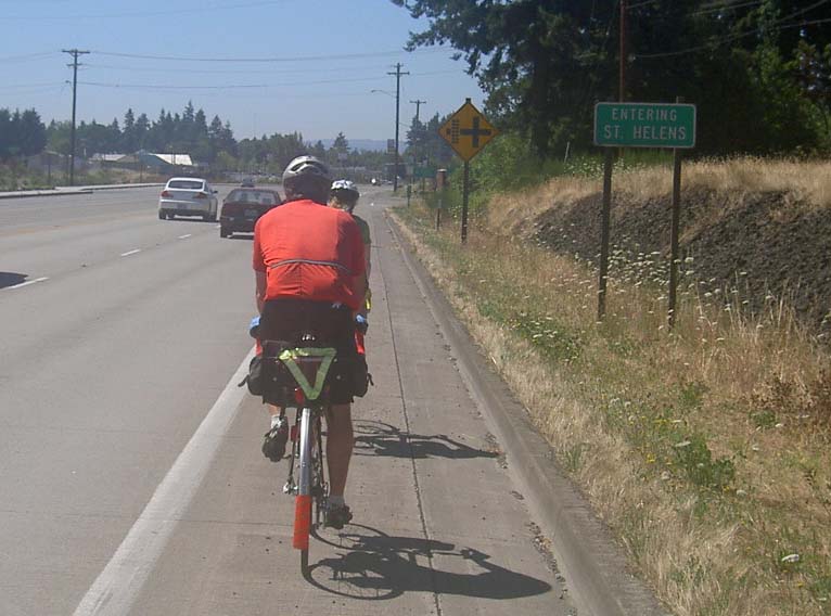 Arriving in St. Helens. Brian near, Karen ahead.