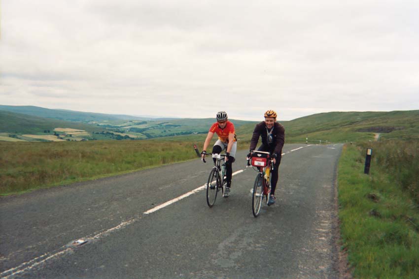 Crossing the Pennines near Yad Moss/Landon Beck with German riders Edmund Hinz and Jens Kussler.