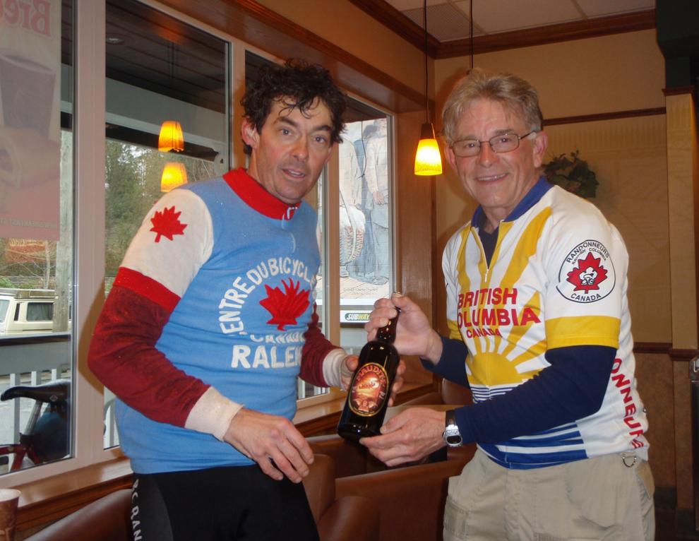 They Did It For Beer... ...Hell Beer ! Organizer Ken promised beer prizes for the riders with the greatest and the least cumulative times for the four brevets. |