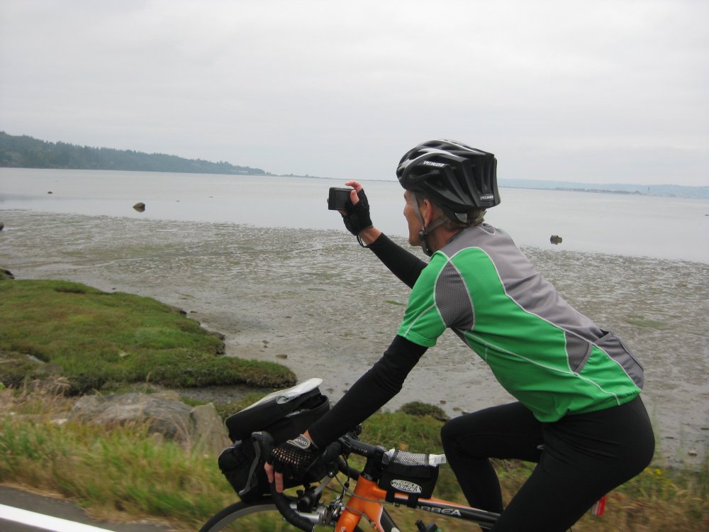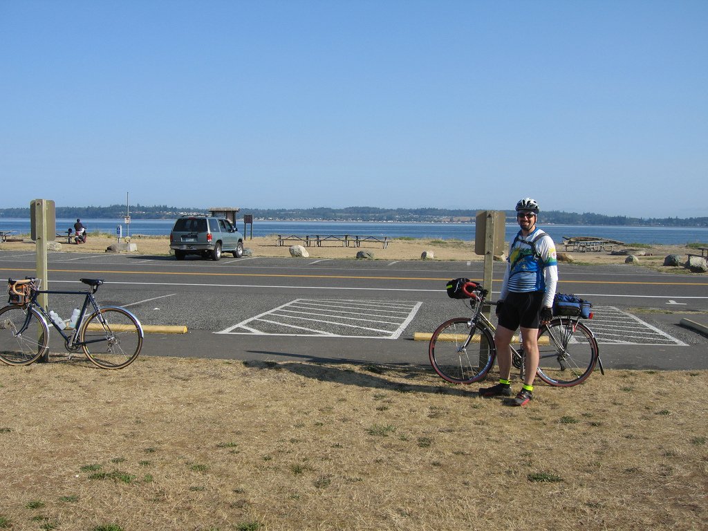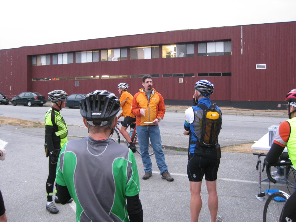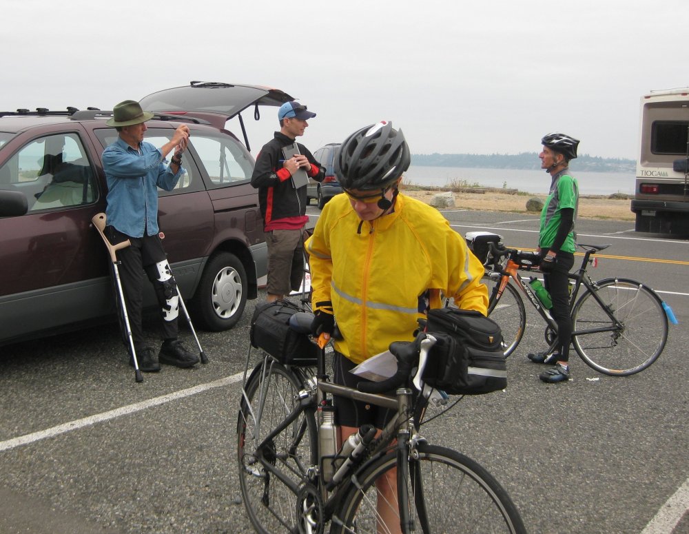 Ride organizer Jerome at Birch Bay. Note the blue sky and sunshine on the pre-ride...