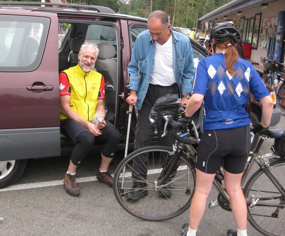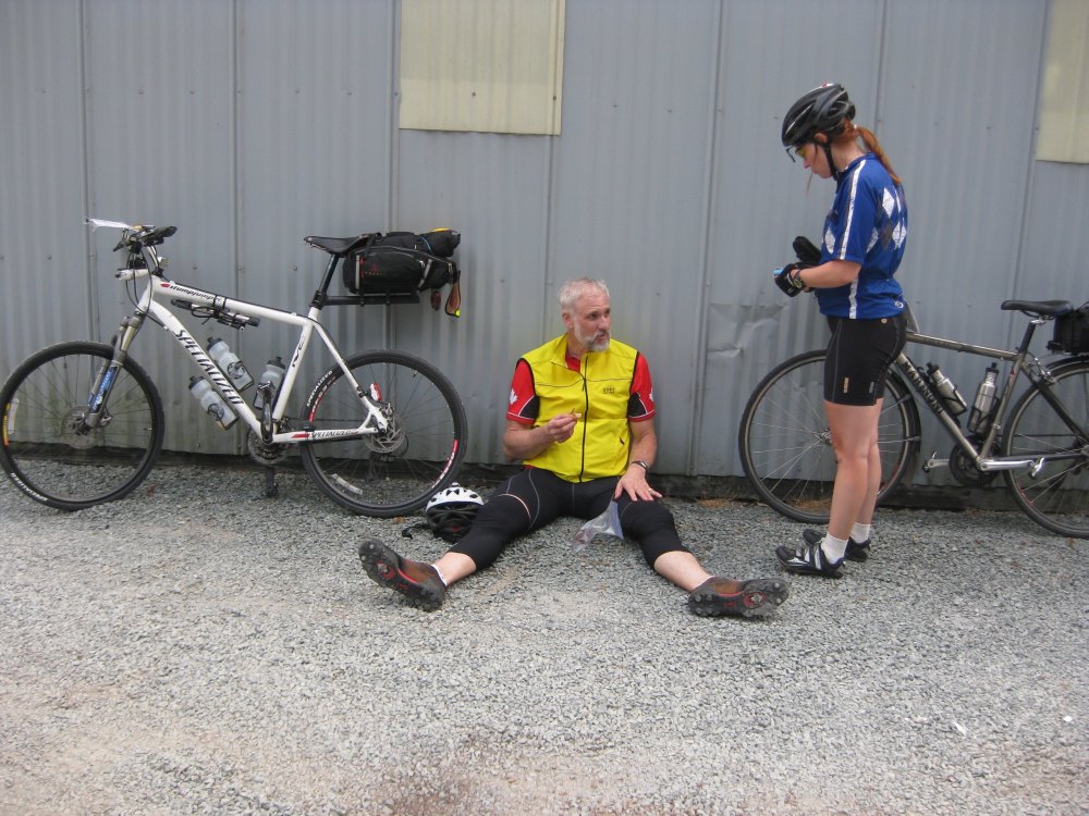 Rick laughin' it up at the Elgar Bay control, 195 km.