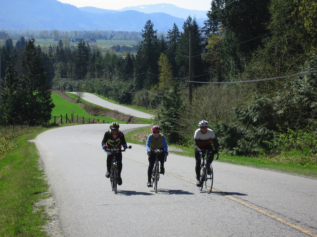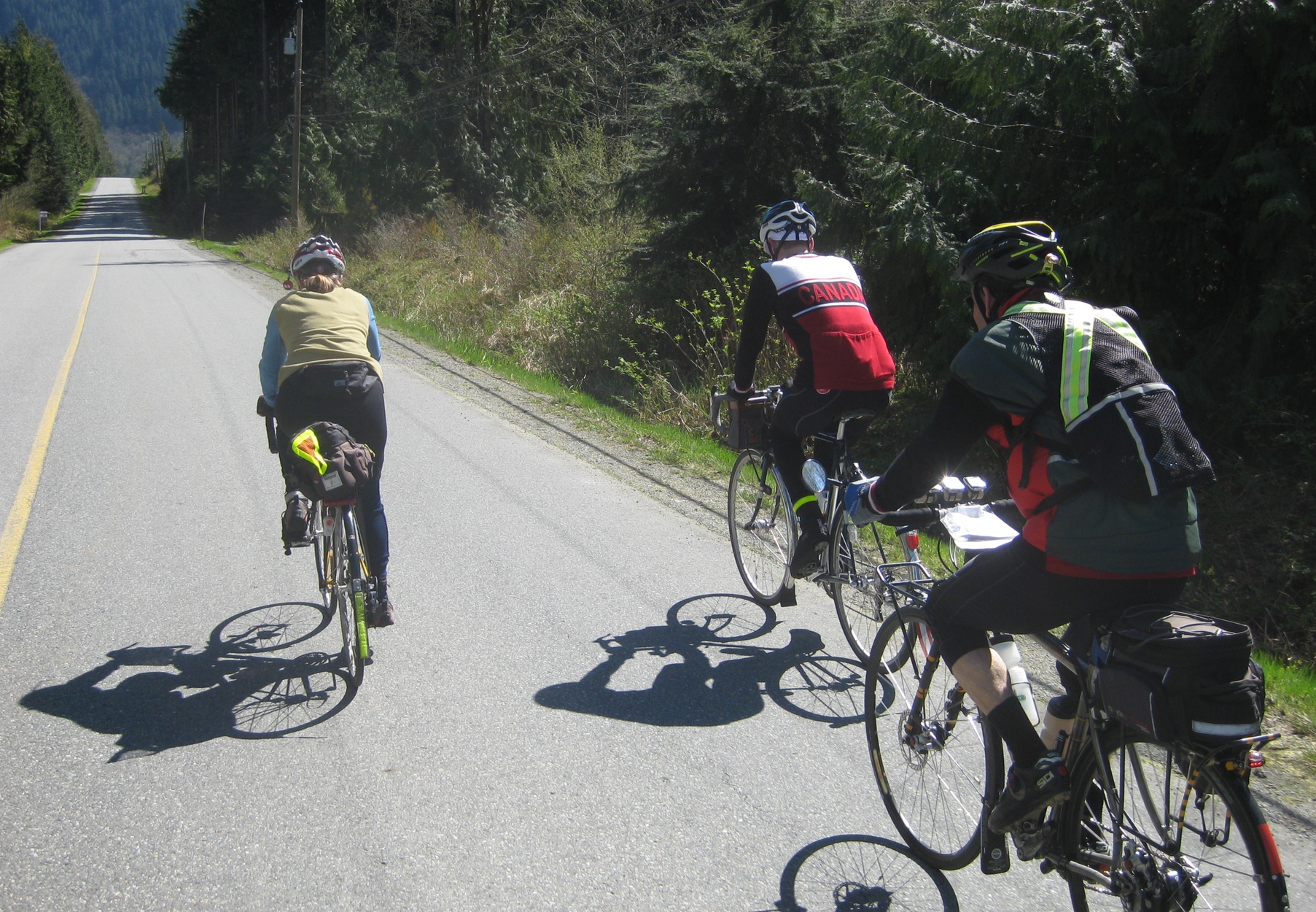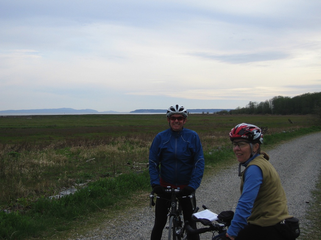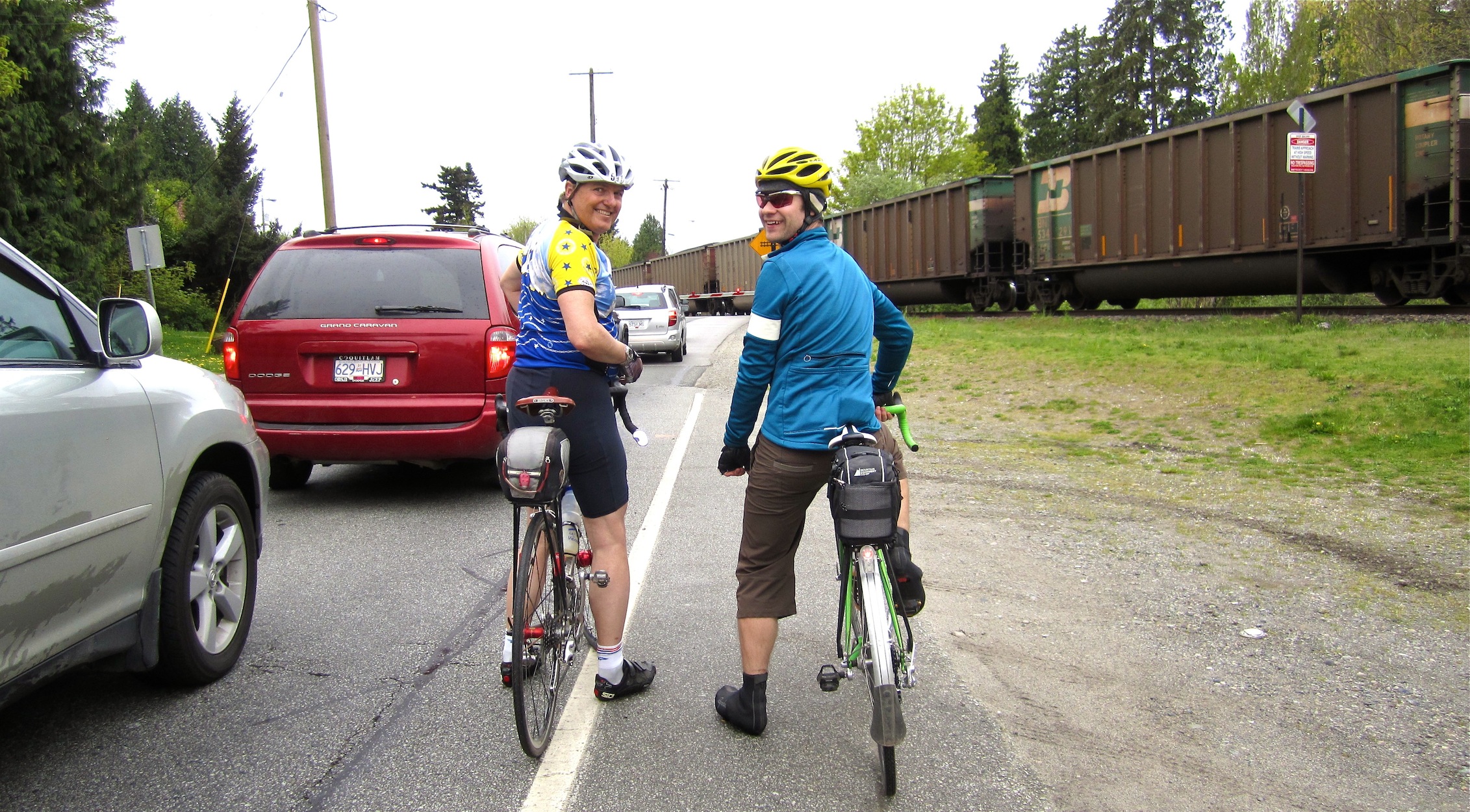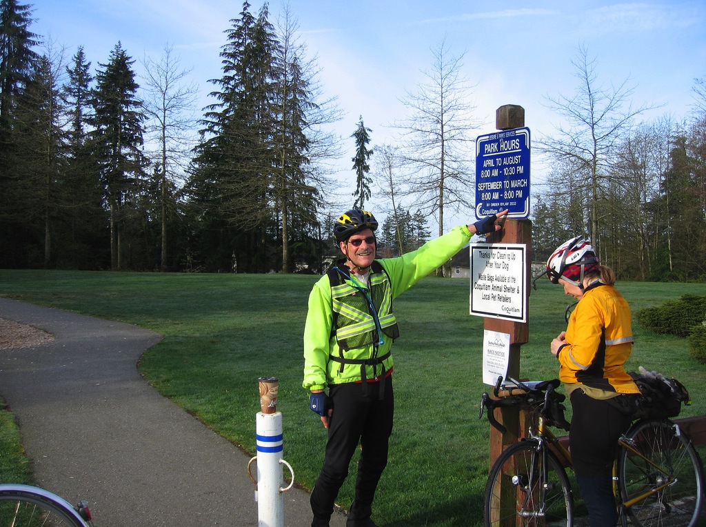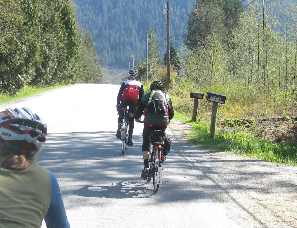 Notice that the organizer's kit fits neatly onto Chris' front rack. You don't need a car to organize a brevet !
