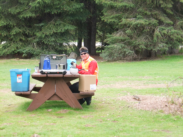 Rick den Braber at the Britton Creek control - wondering what happened to the concession truck.