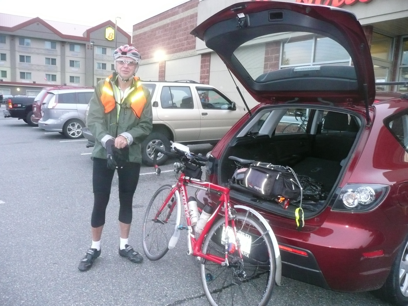 Theo Wyne - Manning Park Lodge. Recharged after his coffee, now ready to head out to Hope.