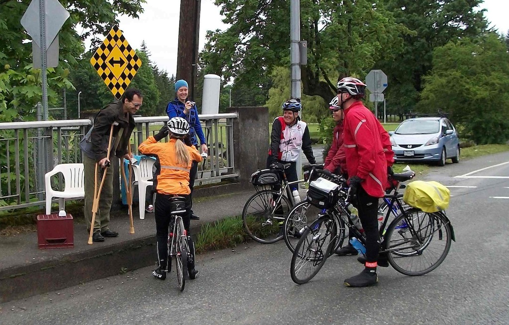 Michel and Karen cheering the riders through Chilliwack