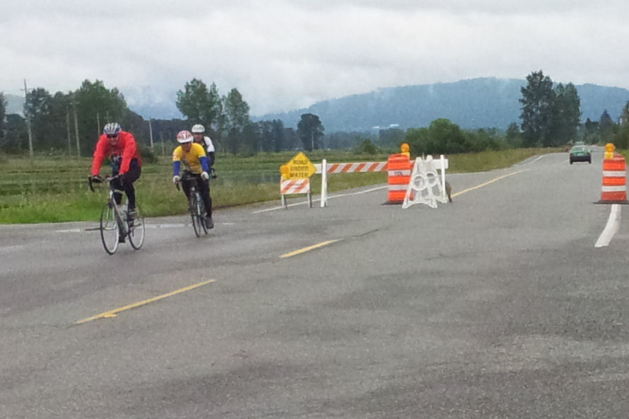 Other riders checking for flooding. Cycling fans...