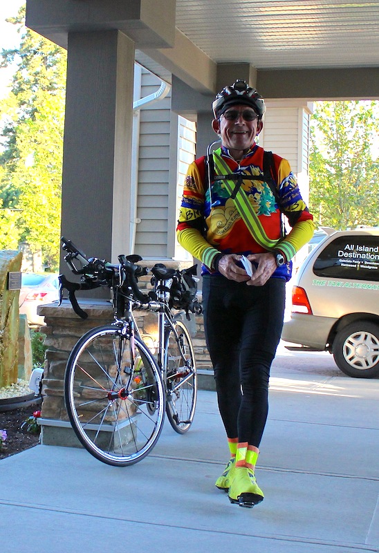 Ken Bonner laughing his way through his sixth Vancouver Island Eau de Hell Week. In 2013 Ken become the first rider in BC (and, well, probably anywhere) to reach a life-time event distance total of 200,000 km.
