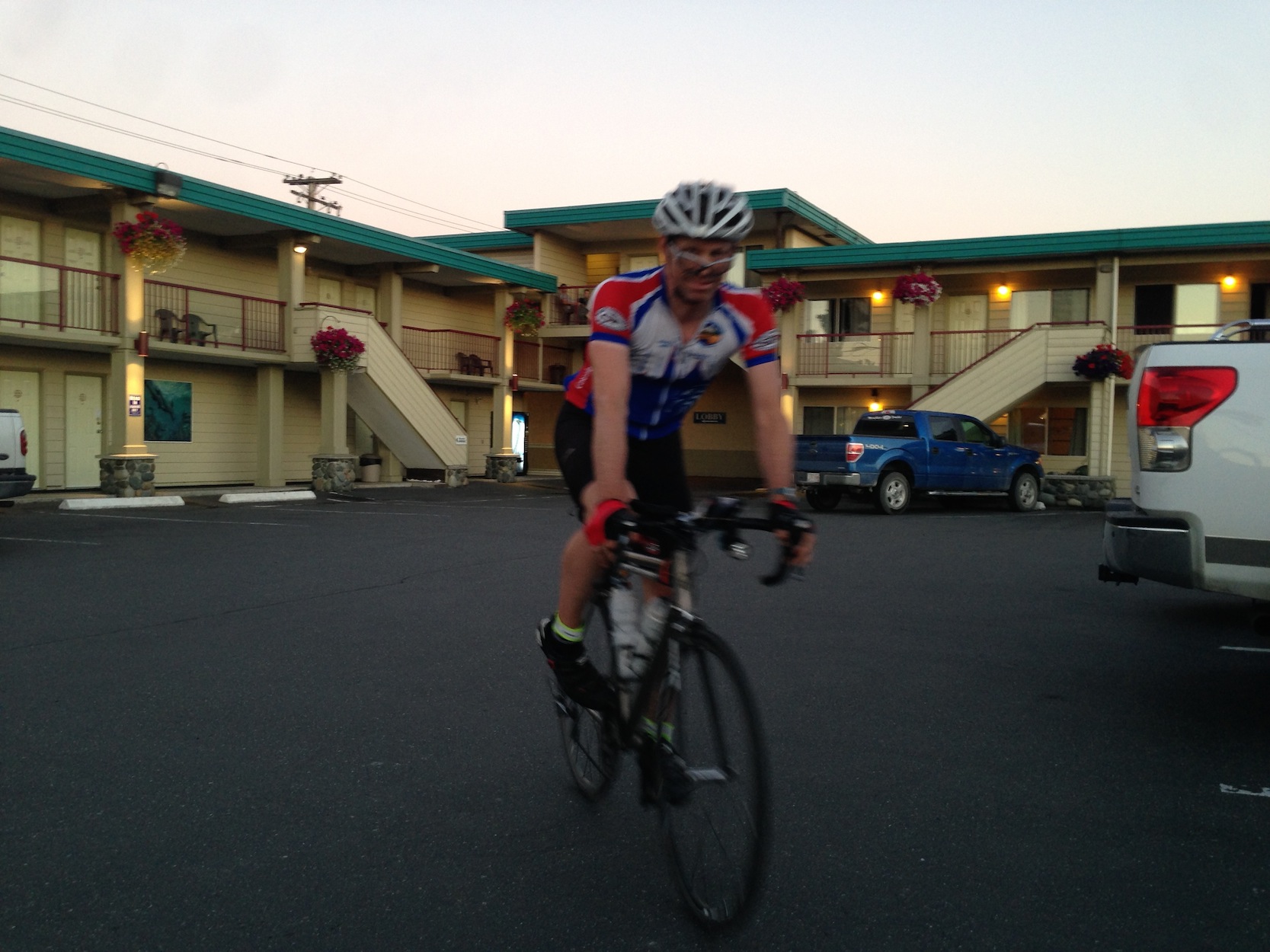 Keith rolls in to Campbell River before a wobbly shower and nap on day 2