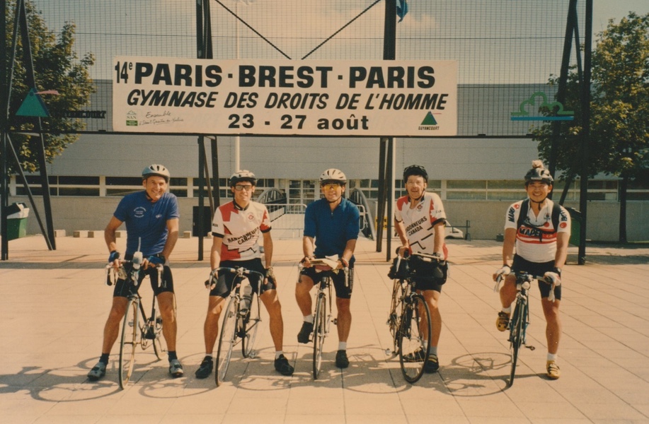 This photo is from before PBP 1999. John is front and centre flanked by four other BC riders: