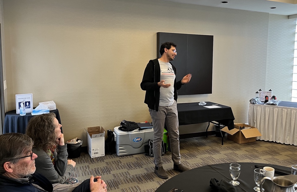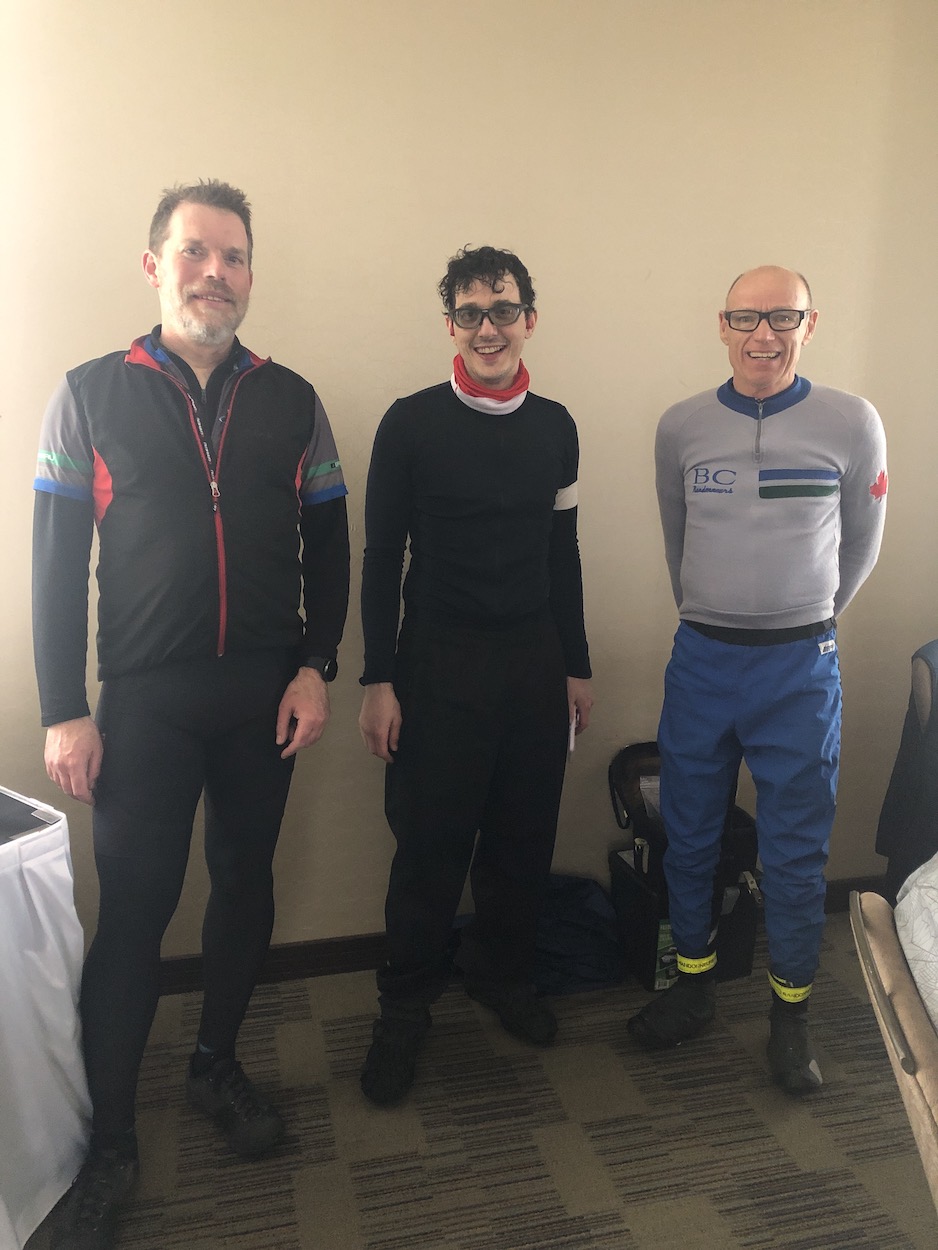 Étienne tells team "Double Andrew & the Tempo of Zoom's" ride story