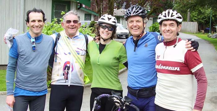 Michel, Ken, Karen Barry & Eric at the finish of flèche at Harrison Hot Springs.