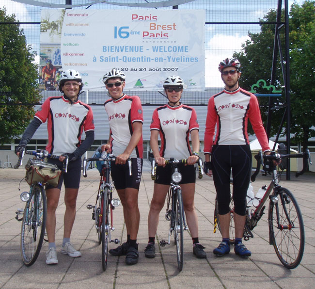 Michel, Eric, Karen & Keith sporting the new BC Jersey before PBP 2007.