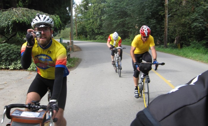 Jeff and Ryan in a photo duel on Camp River Road during the Fall Unflander 200 km.