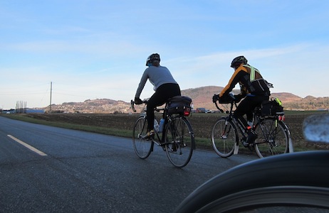 Karen Smith and Gary Baker riding into morning sunshine on permanent #90 "How Flat is the Valley". See photo Bigger Ride date: February 2, 2013