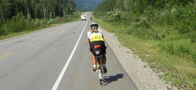 This is Ali Holt near Mount Robson on the 2004 Rocky Mountain 1200, July 21-25.