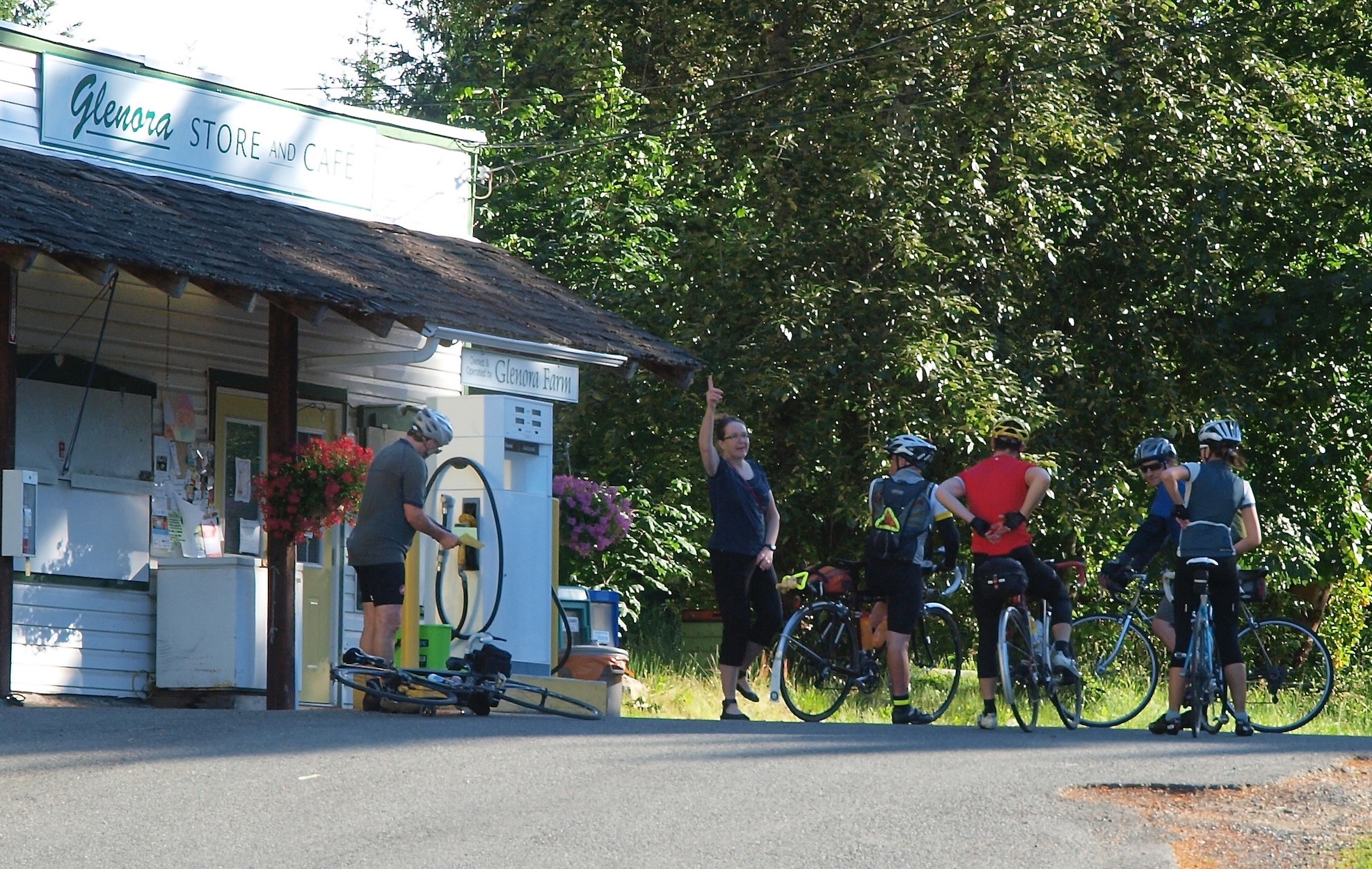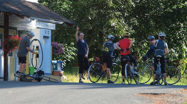 Early in the ride Carol Hinde checks through 5 riders at the Glenora Control. See photo Bigger Ride date: June 22, 2013