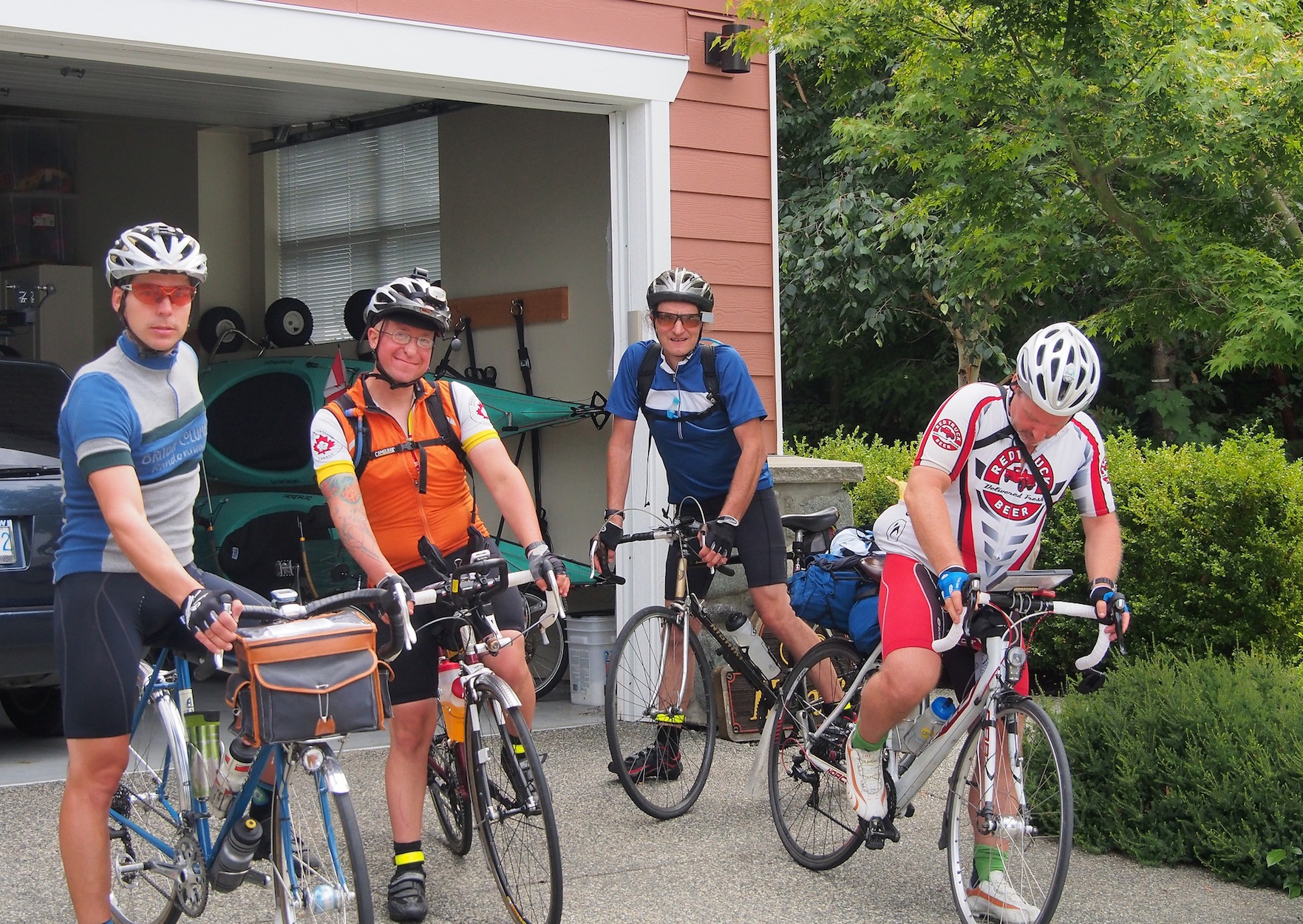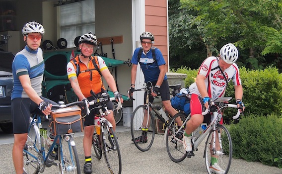 John, Mike, Michael and Will at the Nanaimo control, 170 km, on the Island Summer 600 "Ripple Rock Ramble".