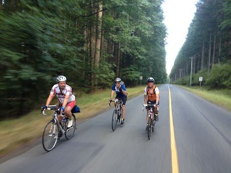 Will, Michael and Mike leaving Comox on the Island Summer 600 "Ripple Rock Ramble". See photo Bigger Ride dates: August 17-18, 2013