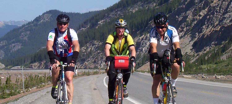 Paul Lahti, Lindsay Martin and Mikel Eders on the Ice Fields Parkway at Rocky Mountain 1200, July 2004