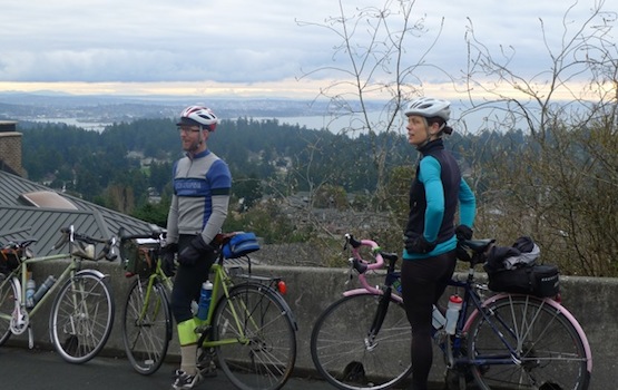 Dave Campbell and Holland Gidney on the Vancouver Island spring 200 pre-ride. "Tour of Greater Victoria" route. See photo Bigger