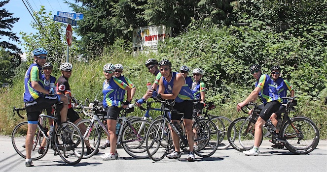 Riders taking a break on the Canada Day Populaire. July 1, 2014