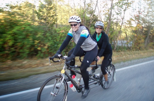 Brynne Croy and Malou Ignacio riding tandem, but not with their regular partners, at the Fall Flatlander 200. September 21, 2014
