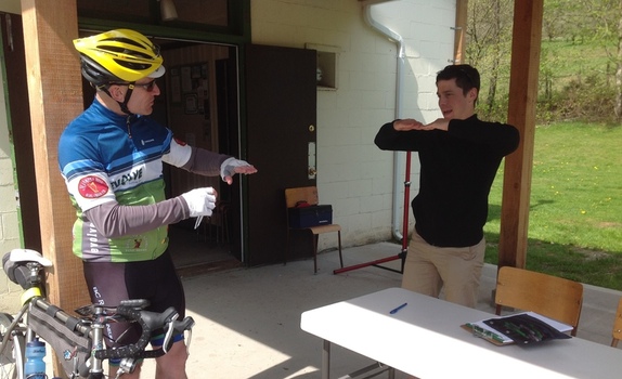 Ed Person and controller John Oswald at the hill-top Ryder Lake control, on the Ryder Lake 300. April 18, 2015