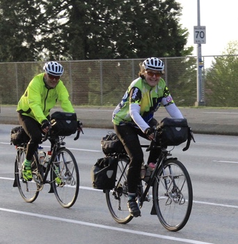 Stephen and Carol Hinde near the start of the Station to Station 200, Burnaby.