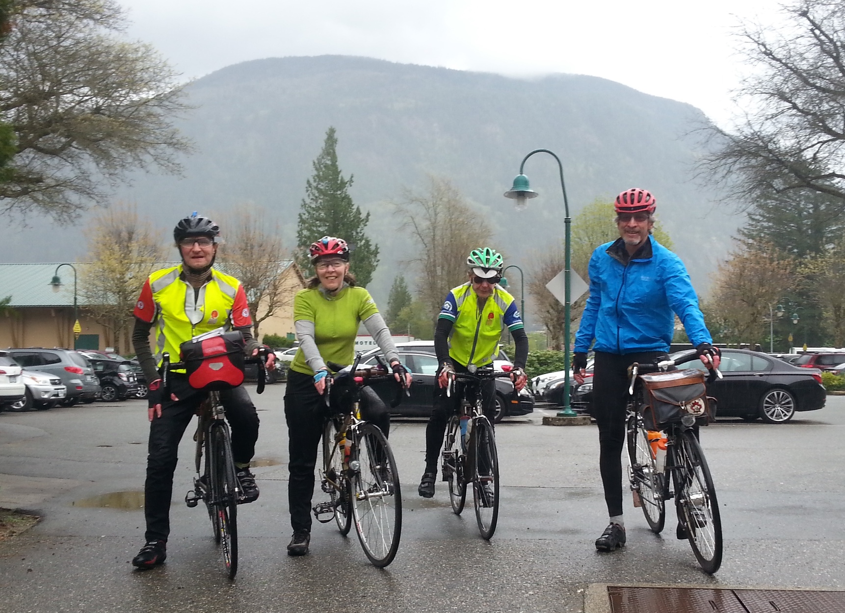 at the finish of their Trace Pacifique ride, May 6, 2017, Harrison Hot Springs.