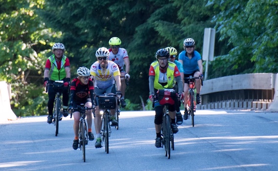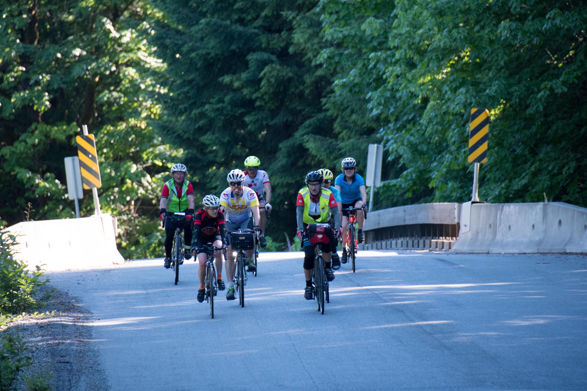 Riders on the Pacific Marine Road on the way to Port Renfrew on P2P 200 km, June 24.