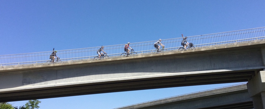 Riders on the Annacis Channel crossing on the lower mainland summer 200.
