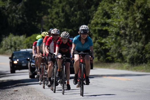Roxanne Stedman, Susan Barr, Graham Fishlock (and others) on the fourth and final stage (Duncan, Port Renfrew, Victoria) of the Peace to Parliament brevet series. Graham was one of 16 riders sho finished the entire 1500 km series.