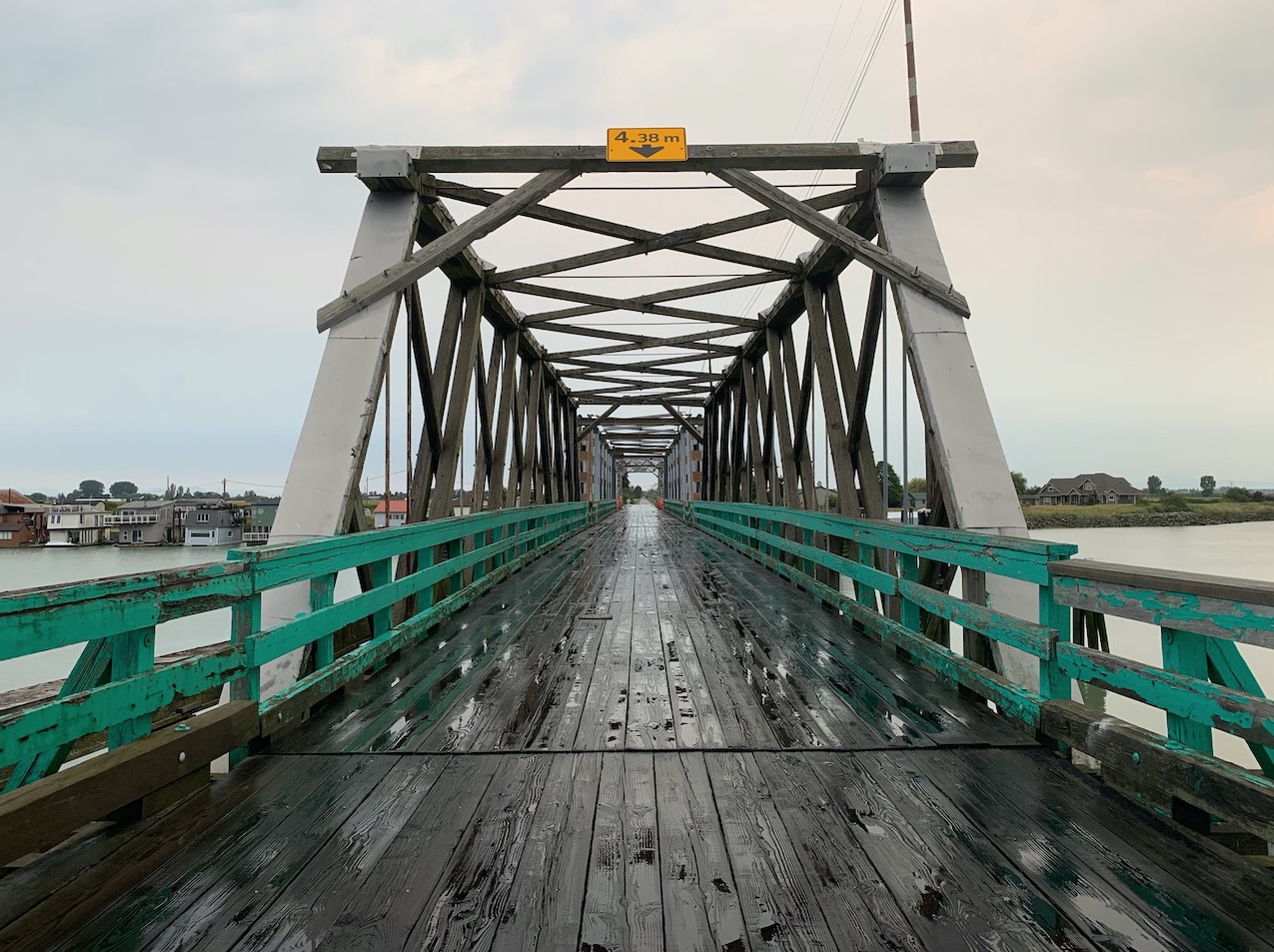 The bridge to Westham Island is a familiar sight to LM riders. Slippery when wet. The photo is from Murray Tough's account of the Tsawwassen-Tsawwassen-Tsawwassen 600. July 31, 2021. |
