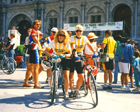 Karen Smith & Judy Morrison in Paris at the prologue to the centenary Paris-Brest-Paris in 1991.